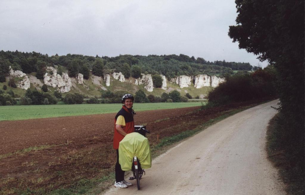 Tauber - AltmühlwegWertheim - RegensburgTag 4: Herrieden Lammelbach - EichstättWann kommt endlich das Schöne... Nach dem Frühstück und einem Brötchen für unterwegs, ging es gegen 9 Uhr 30 los. Bei der Abfahrt war es kühl und bewölkt, aber trocken. Wir hatten uns vorgenommen, an diesem Tag bis Pappenheim zu fahren, eine Strecke von ungefähr 65 km. Es gab so gut wie keine Steigungen und wir kamen flott voran. Die Gegend war eher eintönig, nur in der Ferne sah man Berge. Ab Ornbau wurde die Altmühl zu einem breiten Fluß aufgestaut. Die Fahrt wurde wieder interessanter. Nach einigen Kilometern erreichten wir den Altmühlsee. Er war von Feuchtwiesen umgeben und sah sehr einladend aus. Ein paar Segler und Surfer trieben sich auf dem Wasser herum. Viele Spaziergänger und Radfahrer waren auf den Uferwegen unterwegs. Bei schönem, warmen Wetter ist es sicherlich ein Freizeitparadies. Es war aber leider immer noch recht kühl und so beschlossen wir, unsere Pause nicht wie ursprünglich geplant, direkt am See zu machen. Wir fuhren bis Gunzenhausen und tranken dort auf dem Marktplatz, einen wärmenden Kakao. Nachdem wir noch etwas für unterwegs eingekauft hatten, ging die Fahrt weiter. Die Ausschilderung des Radweges war bedeutend schlechter als vorher. Ohne Radkarte hätte man Schwierigkeiten. Dann begann der monotonste Teil der ganzen Radtour. Es ging bis Treuchtlingen fast ausschließlich am Bahndamm entlang. Meinen Männern hätte es sicherlich gefallen, denn drei oder vier mal kam ein ICE vorbei. Die kamen jedoch immer so plötzlich, dass ich keinen fotografieren konnte. Ich war während der Fahrt etwas frustriert, denn ich wartete die ganze Zeit auf das Altmühltal, so wie ich es in Erinnerung hatte. In Treuchtlingen machte Hildegard fast schlapp. Nicht wegen der Anstrengung, sondern wegen ihres Magens. Sie hatte Magenschmerzen. Nach Kamillentee und Toast ging es ihr besser und wir radelten weiter. Dann kam auch endlich das "Schöne". Das Tal wurde enger, die Berge höher und die Altmühl schlängelte sich in zahlreichen Windungen durch die Landschaft. So machte uns das Radfahren Spaß. Wir erreichten gegen 16 Uhr Pappenheim und da alles gut lief und auch das Wetter mitspielte, beschlossen wir bis Wichstet durchzufahren. In Dollenstein machten wir noch mal eine kurze Pause und legten dann den Endspurt ein. Vorher buchte Hildegard per Handy ein Zimmer. Der erste Wirt wollte uns schon die Uhrzeit vorgeben, bis zu der wir ankommen sollten, aber da wir nicht auf der Flucht, sondern in Urlaub waren, entschieden wir uns für eine andere Unterkunft. Gegen 20 Uhr erreichten wir Eichstätt. Mittlerweile waren wir doch etwas müde und geschafft, aber auch irgendwie stolz auf unsere Kilomerterleistung. Nach dem Duschen und dem Abendessen ging es uns aber schon wieder bedeutend besser und wir freuten uns schon auf den folgenden Tag.