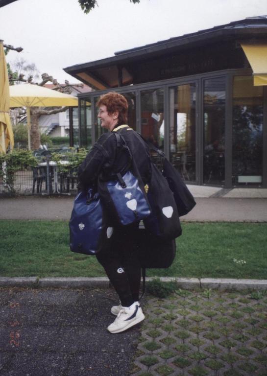 BodenseeradwegRadolfzell - SchaffhausenTag 3: Bodman - FriedrichshafenNeue Erkenntnisse... Als um 7.30 Uhr der Wecker schellte, hörten wir den Regen auf das Dachfenster prasseln. Schade, wir hatten gehofft, daß es auch heute trocken sein würde. Das Frühstück nahmen wir in geselliger Runde ein. Ein älteres Ehepaar aus Hamburg und ein "mittelaltes" Paar aus Hof, saßen mit am Eßtisch im Wohnzimmer unserer Pension. Es war eine lockere Unterhaltung, wobei meist der, wie er sich selbst nannte, Halbossi ( HO Kennzeichen) das Wort führte und zu allem etwas zu sagen hatte. Ob seine Frau auch sprechen konnte, haben wir nicht erfahren. Als wir dann nach dem Frühstück zu unseren Rädern gingen, hatte es aufgehört zu regnen. Der Himmel war aber noch sehr wolkenverhangen, aber was soll's, wir haben ja schließlich unseren Kleiderschrank immer dabei. Notfalls ziehen wir uns um, oder die Regensachen über. Wir umfuhren das nördliche Ende des Überlingersees und erreichten schnell Ludwigshafen. Kurz darauf waren wir in Sipplingen. Dort war Frühsport angesagt. Es ging einige kurze, aber heftige Steigungen den Berg hinauf. Im Ort selbst gab es mehrere interessante Brunnen, die wir gerne fotografieren wollten. Das war aber nicht ganz ungefährlich, da es anscheinend einige einheimische Autofahrer auf uns abgesehen hatten. Bei unseren Fotostopps fuhren sie uns fast die Räder platt, so rasant sausten sie durch die engen Kurven. Wo es rauf geht, geht es anschließend auch wieder runter. Nach einer rasanten Abfahrt waren wir schon fast im nächsten Ort. Wir fuhren an Kloster Birnau vorbei. Ursprünglich hatten wir vor es zu besichtigen, aber wegen umfangreicher Bauarbeiten ließen wir es links liegen und fuhren bis zum Pfahlbaumuseum in Uhldingen durch. Bevor wir die Besichtigung antraten, stärkten wir uns mit sehr leckeren Käsebrötchen, die wir uns in Ludwigshafen besorgt hatten. Für manche Besucher des Museums sah es dann sicher so aus, als ob wir dort einziehen, oder zumindest dort übernachten wollten. Wir packten unser gesamtes Gepäck von den Rädern und schleppten es ins Eingangsgebäude. Ich hatte mich vorher erkundigt, wo wir unser Gepäck lassen konnten. Erfreulicher weise gab es genügend Schließfächer, in denen man seine Taschen unterbringen konnte. Sonst hätten wir nicht in Ruhe durch das Museum gehen können. Das Museum war jedoch der Mühe wert. Ein sehr netter, höchsten 20 jähriger junger Mann, führte uns durch die verschiedenen Pfahlbauten. Er erklärte alles sehr anschaulich und mit Begeisterung. Er wusste auf jede Frage eine Antwort, ohne überheblich zu sein. Er hätte auch an Stelle von Ranga Yogeshwar im Fernsehen auftreten können. Wir waren wirklich erstaunt, wie einfallsreich und geschickt die Menschen vor 2000-4000 Jahren vor Chr. waren. Heute, wo man alles kaufen kann, wären die Leute verraten und verkauft, wenn sie unter diesen Bedingungen überleben müßten. Um einiges klüger und sehr beeindruckt, verließen wir nach ca. 11/2 Stunden die Pfahlbauten, bepackten unsere Räder und fuhren in Richtung Meersburg weiter. Das Wetter hatte bis zum Mittag völlig aufgeklärt und die Sonne schien vom Himmel. In Meersburg an der Promenade fühlte man sich wie in Italien am Mittelmeer. Die Leute saßen in den Straßencafes oder sonnten sich auf den Bänken und genossen den Blick auf den See. Es herrschte ein reges Treiben, war aber noch nicht überlaufen wie im Hochsommer. Wir setzten uns ebenfalls in ein Café und aßen Erdbeerkuchen Danach schoben wir die Räder den Berg hinauf in die Oberstadt. Dort erwartete uns ein vollkommen anderes Stadtbild. Hier befindet sich das alte Schloß aus dem 16. Jahrhundert und in der Nähe das barocke neue Schloß. Nachdem wir die obere Stadt schiebender weise bewundert und die Aussicht über den Bodensee genossen hatten, entschlossen wir uns, nicht mehr den gleichen Weg zum Seeufer hinunter zu schieben (fahren wäre nicht möglich gewesen), sondern oben weiter zu fahren. Wir mußten etwas suchen, fanden aber dann einen wunderschönen Weg, den Höhenweg. Er führte an blühenden Obstplantagen und Weinstöcken vorbei. Die Aussicht war phantastisch. In der Ferne konnte man die schneebedeckten Alpen sehen. Wir fuhren bis Hagenau über diesen Weg und anschließend bis Immenstaad über den eigentlichen Bodenseeradweg. In einer Fahrradwerkstatt wollten wir Hildegards Tacho einstellen lassen. Ziemlich unfreundlich erklärte uns der Mechaniker, dass das an einem funkverngesteuertem Tacho nicht möglich sei, da Funkwellen aus der Schweiz die Frequenz stören würden. Der Tacho war also zum Glück nicht kaputt. In Immenstaad brauchte Hildegard einen Tee mit WC, da sie etwas "Bauchgrummeln" hatte. Auch dort fanden wir wieder ein schönes Fleckchen für eine Pause. Anschließend ging es dann leider bis Friedrichshafen immer an der vielbefahrenen Bundesstraße vorbei. In Friedrichshafen wollten wir übernachten. Die Touristeninformation hatte schon geschlossen, aber in meinem Bikelineheft standen genügend Adressen. Nach mehreren vergeblichen Anrufen fanden wir ein einfaches Zimmer bei einer freundlichen alten Dame in Jettenhausen. Nachdem wir unseren Reisestaub entfernt hatten, gingen wir einige hundert Meter zu Fuß zum Essen. Das Essen war spitzenmäßig!!! Im Nebenraum saß eine größer Busgesellschaft, die in lustiger Stimmung war. Es wurde gesungen, getanzt und Vorträge wurden zum Besten gegeben. Mit einem halben Ohr hörten wir zu. Ein Vortrag gefiel uns besonders gut. Wir fragten den Kellner, der uns sehr aufmerksam bedient hatte, ob er uns vielleicht eine Kopie besorgen könne. Es klappte. Mit je einer Kopie verließen wir in bester Stimmung das Restaurant. Der Tag war wieder rundum schön.