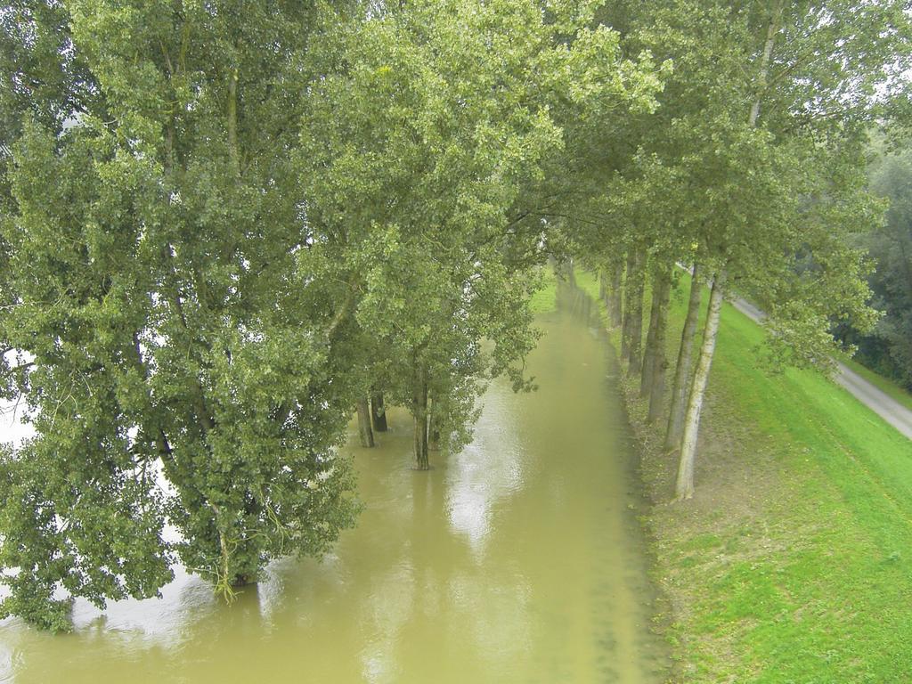 Donauradweg, Teil 2Ingolstadt - Winzer - Bad BirnbachTag 5: Winzer - Bad Birnbach - 24.08.2005Vom rechten Weg ab... Am Morgen trafen wir unsere Entscheidung, den Donauradweg zu verlassen. Zum einen wollten wir uns nicht selbst in Gefahr bringen und zum anderen auch Einheimischen und Hilfskräften nicht im Weg stehen. Wir wollten uns südlich ins Landesinnere begeben. Unsere Wirtin hatte uns das Bäderdreieck in Niederbayern empfohlen. Nördlich der Donau begann der bayrische Wald und dort waren uns die Steigungen zu hoch. Zunächst fuhren wir in Winzer über die Donaubrücke in Richtung Osterhofen. Als wir auf der Brücke standen, sahen wir, wie weit der Fluß sich schon ausgebreitet hatte. Das Wasser war eine braune Brühe, mit einer starken Strömung. In Osterhofen wollten wir uns zunächst einmal mit passenden Radkarten versorgen. Wir fanden auch eine Buchhandlung, in der direkt im Eingangsbereich ein Tisch mit Radkarten aufgebaut war. Nun begann die Qual der Wahl. Die Verkäuferin war uns keine große Hilfe. Sie war total überfordert. Sie betonte immer wieder, daß ihre Gegend eigentlich ziemlich häßlich sei und es keine vernünftigen Radwege gäbe. Sie empfahl uns immer wieder an der Donau entlang zu fahren. Den einzigen schönen Radweg, den sie persönlich kannte, war der Vilstalradweg in Richtung Vilshofen, das wiederum an der Donau liegt. Nach einigem hin und her entschieden wir uns für zwei Karten. Die Verkäuferin hatte auch nur noch wenig Zeit, da sie Mittagspause machen wollte. Über Forsthart und Kriestorf ging es nach Aldersbach. Dort machten wir eine kurze Pause. Danach ging es weiter über Aiderbach nach Eggelham. Bis dahin ging es häufig auf und ab, so daß wir mehrfach schieben mußten. Hinter Alfham kam dann eine lange, starke Steigung. Wir hatten zwar noch gar nicht so viele Kilometer hinter uns gebracht, aber die Strecke schlauchte wirklich. Jetzt ging es aber mit der Schieberei erst richtig los. Wir hielten schon mal etwas Ausschau nach Übernachtungsmöglichkeiten, aber nirgends standen entsprechende Hinweisschilder. Die Dörfer waren außerdem ziemlich klein und hier war auch sicher „der Hund begraben“. Es half nichts, wir mußten über den Berg rüber. Eigentlich hatten wir uns unseren Urlaub ganz anders vorgestellt. Als wir dann endlich Oberbirnbach erreicht hatten, ging es ohne Unterbrechung rasant den Berg hinunter. Gegen 17.45 Uhr erreichten wir Bad Birnbach. Hier gab es genügend freie Betten und keine Hochwassergefahr.