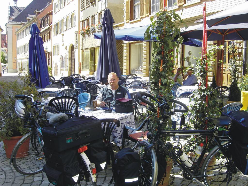 NeckarradwegVillingen-Schwenningen - MannheimTag 3: Dettingen - Aich - 29.08.2005Rachegelüste... Bei herrlichem Wetter ging es um 9.45 Uhr wieder los. Beim Frühstück hatten wir eine nette Unterhaltung mit einem jungen Paar, das mit einem Spezialtandem plus Anhänger zum Bodensee wollte. Genau wie wir hatten sie auch nicht so besonders gut geschlafen. Das lag daran, daß sich bis spät in der Nacht die Dorfjugend unter unseren Fenstern tummelte und sich viel mitzuteilen hatte. Im Morgengrauen trafen sich dann vermutlich Rentner zu einer Werbetour. Leider lag die Bushaltestelle dem Gasthof direkt gegenüber. Wir hätten gerne einen Eimer Wasser aus dem Fenster geworfen, um die Versammlungen zu zerstreuen. Unseren ersten Zwischenstopp machten wir bereits in Horb, um dort den Schaltzug meines Fahrrads reparieren zu lassen. Nach knapp 20 Minuten konnten wir unsere Tour fortsetzen. Einige Steigungen und Gefällstrecken sorgten bis Rottenburg für Abwechslung. Am sehenswerten Marktplatz machten wir eine Tee- / Kaffeepause. Nach etwa 10 Kilometern erreichten wir bereits die Universitätsstadt Tübingen. Das, was wir auf unserer Durchreise von der Stadt zu sehen bekamen, gefiel uns sehr gut. Viele junge Leute bevölkerten das Stadtbild. Auf dem Neckar tummelten sich Ruder- und Tretboote. Die alte Häuserzeile am Neckarufer machte einen hellen und freundlichen Eindruck. Hier läßt es sich sicher gut leben! Der Weg ging weiter bis Mittelstadt. Dort füllten wir in einem Biergarten unsere Flüssigkeitsspeicher wieder auf. Wir hatten mittlerweile ca. 60 km auf dem Tacho und hielten Ausschau nach einer Unterkunft. Telefonisch orderten wir ein Zimmer für die Nacht. Bis Neckarteilfingen blieben wir auf dem Neckarradweg. Wir überquerten den Fluß und stärkten uns für die letzten Kilometer in der Innenstadt mit einem Eis. Danach fuhren wir weiter in Richtung Aich. Das Fahren hatte aber schon nach wenigen Metern ein Ende. Es begann eine starke Steigung und somit eine zwei kilometerlange Schiebestrecke. So etwas baut einen am Ende eines ganzen Fahrtages nicht gerade auf. Es gab natürlich anschließend wieder eine Abfahrt. Nach einigem Suchen fanden wir unsere Pension. Nachdem wir uns frisch gemacht hatten, machten wir uns auf die Suche nach einem Speiselokal. Wir fanden eine einzige, ziemlich schäbige Pizzeria. Das Publikum war entsprechend, die Pizza war zum Glück besser als das Drumherum.