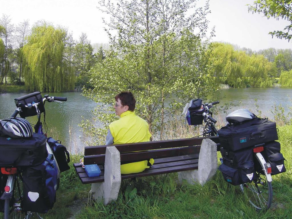 LeineradwegLeinefelde - Verden a.d. AllerTag 4: Freden - Hannover - 09.05.2006Durststrecke... Wie immer hatten wir für 8 Uhr das Frühstück bestellt. Wir freuten uns auf den Kaffee, der hatte aber leider den Geschmack aus Jugendherbergszeiten. Ansonsten war alles o.k.. Hildegard hatte am Morgen schon ein ganz besonderes Erlebnis. Auf dem Flur traf sie die Geschäftsführung (den Wirt) schon in Unterwäsche, auf der Suche nach seinem Hund. Wir besuchten zuerst für unsere üblichen Einkäufe einen Lebensmittelmarkt. Gegen 10 Uhr verließen wir die Stadt. Das Wetter war wieder schön. Nach wenigen Kilometern kam die erste langgezogene Steigung und wir kamen schon ins Schwitzen. Danach folgte natürlich auch wieder eine rasante Abfahrt. In Alfeld machten wir schiebenderweise einen Stadtbummel. Es gab wieder einige lohnenswerte Fotomotive. Unsere verbrauchten Kalorien ersetzten wir mit Kakao bzw. Eiskaffee. Anschließend ging es weiter in Richtung Gronau. Kurz bevor wir die Stadt erreichten, kamen wir an einem idyllischen See vorbei. Obwohl wir noch nicht hungrig waren, machten wir dort unser Mittagspicknick. Am Ortsausgang von Gronau fehlten mal wieder die Radwegschilder. Beim Blick in die Karte stoppte spontan ein Radrennfahrer, der dann für uns den Fremdenführer spielte. Der nette Herr meinte, der Weg über Elze sei ein Umweg und auch nicht besonders schön, er würde uns einen anderen Weg empfehlen. In einem rasanten Tempo fuhr er einige Kilometer vor uns her und erklärte uns dann den weiteren Weg durch ein Naturschutz- und Feuchtgebiet, über Betheln in Richtung Burgstemmen. Hildegard und ich haben auf dieser Tour schon überlegt, ob es vielleicht Absicht ist, daß der Leineradweg so schlecht ausgeschildert ist und ob vielleicht statt dessen 1 € - Kräfte eingesetzt werden, um den Touristen den Weg zu zeigen. So viele hilfsbereite und freundliche Menschen, wie auf dieser Radtour, sind uns noch nirgendwo begegnet. Das erste Stück des Wegs war landschaftlich wirklich schön. Viele Vögel bevölkerten das Naturschutzgebiet. Dann folgte ein steiler Schotterweg über einen Höhenzug. Danach eine Schotterpistenabfahrt bis ins nächste Dorf. Anschließend mußten wir wieder eine langgezogene Steigung auf der Straße bewältigen. Abgesehen von den Steigungen war heute unser ärgster Feind der Wind. Er kam meistens schräg von vorne und bremste ganz gewaltig. Von Schloß Marienburg, das weithin sichtbar auf einem Berg liegt, machten wir nur ein paar Erinnerungsfotos. Die Schloßbesichtigung ersparten wir uns auf Grund der Höhenlage. Wir hatten noch etwa 20 km bis Hannover. Nun gab es plötzlich eine Schilderflut. An Stellen, an denen es keine Zweifel gab, wo der Weg entlang führen mußte (wo z.B. keine Kreuzung war) standen plötzlich Hinweisschilder, sogar mit Kilometerangaben. Wir hatten unseren Getränkevorrat mittlerweile verbraucht und drohten so langsam auszutrocknen. Leider gab es in den kleinen Orten, die wir durchfuhren weder Geschäfte noch Gaststätten. In Koldingen fanden wir dann endlich einen Kiosk mit Kneipe und ersetzten unser Flüssigkeitsdefizit. Danach ging es durch ein riesiges Wald- und Feuchtgebiet bis Hannover. Viele Ausflügler waren in diesem Naherholungsgebiet unterwegs. Wir hätten die Gegend sicher mehr genossen, wenn wir nicht schon so ausgelaugt gewesen wären. Man mußte sich außerdem sehr auf die Wege konzentrieren, da sie sehr schmal und holperig waren und mehr zum Wandern geeignet waren. Das letzte Stück führte am riesigen Marschsee entlang. Dort tummelte sich alles, was sich in irgendeiner Form sportlich betätigen wollte. Auf dem Wasser gab es verschiedene Boote und auf den Uferwegen waren Wanderer, Jogger, Inlinescater und Radfahrer unterwegs. So viele junge und aktive Leute habe ich noch nie auf einem Haufen gesehen. Es lag aber auch sicher an dem schönen Wetter, das man bis jetzt doch oft vermißt hatte. Für uns wurde es nun allmählich eng. Wir brauchten noch einen Platz zum Schlafen. Leider hatte die Touristeninformation bereits geschlossen. Wir wollten aber auch nicht alle Telfonnummern aus dem Bikelineheft durchwählen, da wir zum einen nicht wußten, wo sich die Häuser befanden und die meisten auch nicht gerade so preiswert erschienen. Ich fragte zunächst eine ältere Dame, ob sie vielleicht etwas wüßte. Sie erklärte uns den Weg zu einem kleinen Hotel in der Nähe. Dort wurde mir relativ unfreundlich mitgeteilt, daß hier alles belegt sei und in der ganzen Stadt garantiert kein freies Bett mehr zu finden sei. Etwas mutlos fuhren wir dann weiter. An einer Straßenkreuzung fragte Hildegard eine Radlerin, ob sie uns weiterhelfen könne. Sie überlegte kurz und meinte dann, sie habe zu Hause noch eine Hotelliste, weil sie kürzlich für Übernachtungsgäste ein Zimmer gesucht hätte. Wir sollten mitkommen und sie würde nachschauen. Wir fuhren einige Kilometer hinter ihr und ihrer Tochter her und folgten ihr bis in die letzte Etage eines Mehrfamilienhauses. Der Ehemann war etwas erstaunt, als er uns sah und wurde fast blaß, als seine Frau erklärte, daß wir ein Zimmer suchen würden. Er atmete erleichtert auf, als sie ihm erklärte, daß wir nur auf der Hotelliste nachschauen wollten. Gemeinsam suchten die beiden ein Hotel heraus und gaben uns die Nummer, Dort war sogar noch ein Zimmer zu bekommen, doch leider sprengte es unseren finanziellen Rahmen. Wir sagten trotzdem zu und machten uns auf den Weg. Unterwegs überlegten wir, doch noch mal im Bikelineheft nachzuschauen und vielleicht etwas Preiswerteres zu bekommen. Gesagt, getan. Es klappte auch auf Anhieb. 20 Minuten später hatten wir unser Hotel erreicht. Im Ersten sagten wir natürlich ab. Das Haus war einfach, aber alles, was wir brauchten, war vorhanden. Nach einer Grundreinigung gingen wir ein paar Meter weiter in die Stadt und aßen in einer urigen Studentenkneipe ein leckeres Abendessen. Danach waren wir wieder rundum zufrieden.