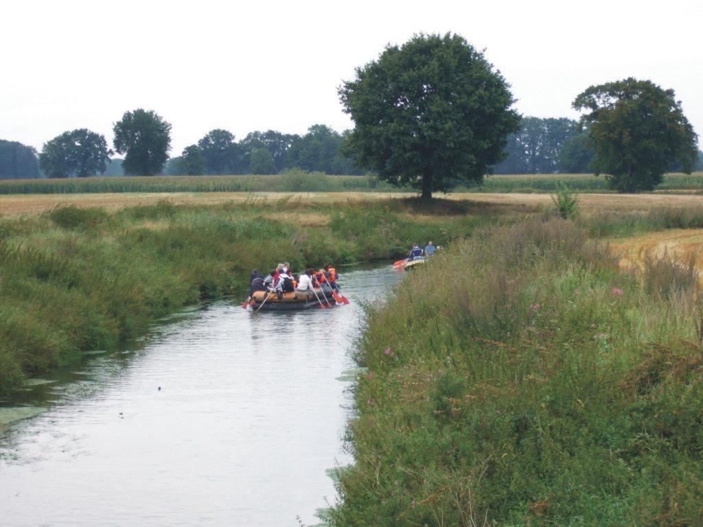 Hase-Ems-RadwegBrochterbeck - Meppen - BrochterbeckTag 2: Bramsche - Essen (Oldenburg) - 19.08.2007Haseüberfall... Aufgrund meiner Blessuren hatte ich schlecht geschlafen, war aber froh, daß ich meine Arme und Beine gut bewegen konnte und somit der weiteren Radtour nichts im Wege stand. Das Frühstück zog sich sehr lange hin, da unser Wirt und Klaus immer mehr Gemeinsamkeiten entdeckten und beide ausgiebig ihre Sammelleidenschaften beschrieben. Zum Glück hatten wir keine Eile und zudem war die Unterhaltung wirklich nett. Wir hatten nicht das Gefühl Fremde zu sein; so möchte man immer aufgenommen werden! Bevor wir gegen 10.30 Uhr den Gasthof verließen, war schon eine Regenschauer herunter gekommen. So hatte sich die lange Unterhaltung noch zusätzlich gelohnt. Das Wetter war leider nicht so sonnig wie am Vortag. Wir waren aber froh, daß es nicht regnete oder windig war. Die Temperatur war zum Radfahren recht angenehm. Ich konnte sogar in kurzer Hose fahren und dadurch mein aufgeschrammtes Knie etwas schonen. Wir fuhren nicht immer auf dem Hase-Ems-Weg, sondern ab und zu die parallel dazu verlaufenden Radwanderwege. Sie waren alle gut ausgeschildert und man konnte immer wieder problemlos den Hauptweg erreichen. Wir fuhren am Alfsee vorbei, von dem wir aber enttäuscht waren. Er machte auf uns einen sehr künstlich angelegten, kahlen Eindruck. Ingesamt gefiel uns die Gegend aber gut. Der Weg verlief meist auf geteerten Wirtschaftswegen oder ruhigen Landstraßen. Wir kamen an vielen, großen, alten, gut erhaltenen Gehöften vorbei. Daß Niedersachsen ein Pferdeland ist, läßt sich nicht verleugnen. So viele Pferde, Reiterhöfe und große Reithallen sieht man sonst nicht. Was uns auch gut gefiel, waren die vielen Obstbäume an den Wegrändern. Sie waren oft regelrecht mit Pflaumen, Äpfeln oder Birnen überladen. Die Landwirtschaft hat hier anscheinend noch einen hohen Stellenwert. Gemüseanbaubetriebe oder Gärtnereien, wie am Niederrhein, haben wir nicht gesehen. Die Dörfer machen noch einen bodenständigen Eindruck. Sie sind sauber und gepflegt, aber nicht auf „modern“ herausgeputzt. Die heutige Tour verlief ruhig und war nicht anstrengend. Hier ist anscheinend noch nicht alles touristisch vermarktet. Um Punkt 12 Uhr machten wir auf einer gemütlichen Bank in Heeke ein Mittagspicknick. Danach ging es weiter bis Bersenbrück. Nachdem wir uns den Ortskern angesehen und einen Imbiß gegessen hatten, fuhren wir zügig in Richtung Quakenbrück. Wenige Kilometer vor dem Ort gelangten wir zur Überfallhase. Dieser merkwürdige Name hat folgende Bedeutung: die Hase verzweigt sich in viele Flußarme. Früher kam es dadurch häufig zu Überschwemmungen. Um die Stadt davor zu schützen, wird die Hase am Haseüberfall aufgestaut und läuft in einen Seitenarm über. Das ganze Gebiet ist durch die vielen Bäche und Gräben sehr sumpfig, aber auch sehr fruchtbar. Badbergen und Quakenbrück liegen im sogenannten Artland. Auf der Hase sahen wir auch ab und zu kleine Paddelboote oder größere Schlauchboote. Kurz vor dem Überfall gibt es ein Trainingsgelände für Wasserpolo. Diese Art Wassersport hatten wir bisher noch nicht life gesehen. Den Jungs schien es jedenfalls Spaß zu machen. Gegen 16 Uhr erreichten wir die Altstadt von Quakenbrück. Es gab wieder reichlich Fotomotive. Am Marktplatz, unter einem großen Sonnenschirm, warteten wir bei Kaffee und Kuchen einen Regenschauer ab. Anschließend machten wir per Fahrrad eine Stadtrundfahrt. Danach fuhren wir auf direktem Weg nach Essen, zu unserem tel. vorgebuchten Quartier. Der Gasthof war sehr groß und das Zimmer sehr schön, doch leider mußten wir zum Abendessen noch mal in die Stadt. Nachdem wir eine Pizza gegessen hatten, beschlossen wir den Tag bei einem Bier in einer kleinen Dorfkneipe.