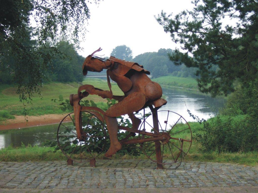 Hase-Ems-RadwegBrochterbeck - Meppen - BrochterbeckTag 3: Essen (Oldenburg) - Lehrte - 20.08.2007Privatführung... Zum Ausgleich für das entgangene Abendessen im Gasthof, erhielten wir ein Frühstücksbuffet für zwei. An alles wurde gedacht und zudem wurden wir genötigt, noch etwas Obst und Müsliriegel für unterwegs mitzunehmen. Um 9.45 Uhr ging es wieder los. Unser erster Weg führte zu einer Drogerie. Dort besorgte ich mir eine Wundsalbe, denn die Hautabschürfungen machten mir immer noch zu schaffen Es rächt sich, wenn man einmal ohne „Notfallausrüstung“ unterwegs ist. Auch etwas zu wenig Flickzeug hatten wir an Bord. Deshalb machten wir einen Umweg durch Brunnen, wurden aber erst in Löningen fündig. Dort machten wir einen keinen Stadtbummel, wobei die pfeilerlose Saalkirche mit dem freistehenden Glockenturm, im wahrsten Sinne des Wortes von herausragender Bedeutung war. Auf eine Besichtigung verzichteten wir jedoch. Statt dessen machten wir eine kurze Kaffeepause. Etwas außerhalb der Stadt machten wir an einem der vielen Rastplätze unser Mittagspicknick. Das Wetter war besser als vom Wetterbericht vorhergesagt. Demnach hätten wir eine 80%ige Regenwahrscheinlichkeit gehabt. Bisher war es aber trocken und relativ warm. Die Hase hatte ab Essen ihre Richtung geändert. Während sie zuerst in Richtung Norden floß, verlief sie nun in Richtung Westen. Wir fuhren weiter bis Herzlake. Als wir das Zentrum erreichten, fing es dann doch an zu regnen. Wir hatten uns zu früh gefreut. Zum Glück dauerte es nicht lange. Dann nieselte es nur noch und wir fuhren weiter. Unser Weg verlief heute oft durch Waldgebiete und durch Felder. Bisher war die Radtour sehr erholsam. Das Hasetal ist nicht mit den bekannten Radwegen an Donau oder Weser zu vergleichen; wer aber Ruhe und ungestylte Natur sucht, ist hier richtig. Uns erstaunten immer wieder die großen Einfamilienhäuser und die großen Grundstücke. Hier ist bauen anscheinend noch bezahlbar. In den Dörfern ist die Bebauung insgesamt auch aufgelockerter als bei uns. Hier kann so schnell keiner dem Nachbarn auf den Teller gucken. Am frühen Nachmittag erreichten wir Haselünne. Am Rande der Stadt durchfuhren wir zuerst ein großes Naherholungsgebiet mit einem See. Wir wollten im Ort übernachten, doch leider fanden wir keine bezahlbare Unterkunft. Deshalb buchten wir ein Zimmer in Lehrte. Vorher stärkten wir uns mit Apfelkuchen und sahen uns anschließend die Stadt an. In Haselünne gibt es mehrere Kornbrennereien. Die uns bekannteste ist Berentzen. Für eine Besichtigung war es leider schon zu spät. Wir konnten aber noch den Verkaufsraum aufsuchen. Er war nett eingerichtet und das Angebot war umfangreich. Spirituosen kauften wir aber trotzdem nicht, sondern nur ein paar Modellautos. Danach fuhren wir zum historischen Bahnhof. Dort ist eine Museumseisenbahn beheimatet. Vor dem Bahnhof standen einige alte Wagons. An einem Lokschuppen stand eine Türe offen. Wir waren neugierig und schauten hinein. Zufällig waren zwei Eisenbahner dort, die gerade werkelten. Wir wurden freundlich begrüßt und durften uns die Loks und die ganze Werkstatt ansehen. Es war sehr interessant. Einige Maschinen waren genauso historisch und außergewöhnlich wie die alten Fahrzeuge. Es war eine sehr interessante Werksführung. Danach fuhren wir zügig bis Lehrte. Der Ort besteht nur aus wenigen Häusern und einer Kirche, besitzt aber zwei große Hotels. Das fanden wir sehr erstaunlich. Es muß sich anscheinend lohnen. Unseren schönen Urlaubstag beendeten wir, wie fast immer, mit einem leckeren Abendessen.