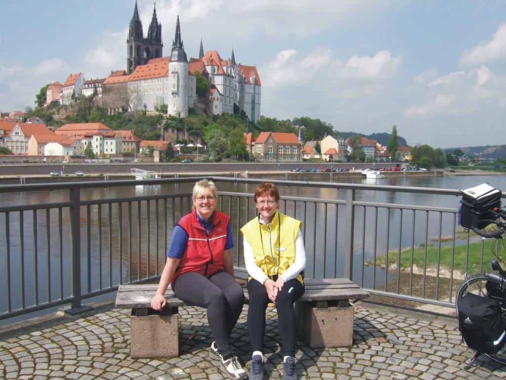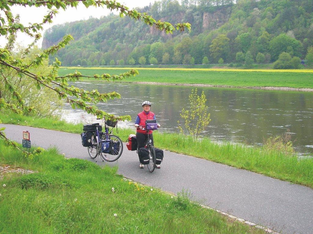 Elberadweg, Teil 1Bad Schandau - MagdeburgTag 6: Dresden - Belgern - 30.04.2008In letzter Minute... Heute wollten wir Dresden wieder verlassen, mit der festen Absicht, bald mal wieder zu kommen und uns die beiden Museen und viele Dinge anzusehen, die wir leider in der kurzen Zeit nicht geschafft hatten. Das Wetter sah gut aus und schon gegen 9.20 Uhr saßen wir auf den Rädern. Wir fuhren noch mal durch den großen Garten und waren nach 4,44 km schon an der Frauenkirche. Dort schossen wir noch ein paar Abschiedsfotos und suchten den Elberadweg in Richtung Meißen. Alles lief wie geschmiert. Wir fanden schnell die Radwegschilder. Wir kamen auch direkt an Yenize vorbei, einer ehemaligen Zigarrenfabrik, die wie eine Moschee gebaut ist. Auf der Hinfahrt im Zug hatten wir dieses markante Gebäude schon von weitem gesehen. Jetzt wird das Gebäude für kulturelle Veranstaltungen genutzt. Danach führte der Weg am Eissportgelände vorbei und schon hatten wir die Stadt hinter uns gelassen. In Niederwartha wechselten wir das Ufer und kamen zügig nach Meißen. Die bekannte Silhouette der Stadt, mit dem hochgelegenen Schloß und dem Dom, war schon von weitem zu erkennen. Wir überquerten die Elbe wieder und fuhren bis zum Rathaus. Auf dem Marktplatz davor aßen wir eine Suppe und machten von den schönen Häusern und der Kirche rings um den Platz ein paar Aufnahmen. Wir schoben anschließend unsere Räder Richtung Dom und Albrechtsburg. Da uns der Weg aber zu steil wurde, gingen wir unterhalb der Burg zur Elbe hinunter. Bei der nächsten Brücke überquerten wir wieder den Fluß und setzten unseren Weg auf der rechten Elbseite fort. Ab und zu sahen wir ein Ausflugsschiff oder kleine Kanadier, Berufsschiffer sahen wir nicht. Auf dem Radweg kamen uns häufig Reiseradler entgegen, oder wir wurden von einigen überholt. Manchmal fuhren wir auch an einigen vorbei. Wir merkten schon, daß wir auf einem beliebten Fernradweg unterwegs waren. Wir sahen auch häufig Hinweisschilder auf Radlerimbiß oder Übernachtungsmöglichkeiten. Der Weg selbst war in hervorragendem Zustand, meist geteert oder gepflastert. Nur wenige Stellen waren unbefestigt oder mit groben Natursteinen gepflastert. Wir waren von den Weinhängen überrascht, da sächsischer Wein bei uns zu Hause so gut wie unbekannt ist. Bis zum Rittergut in Merschwitz fuhren wir durch eine Mittelgebirgslandschaft. Dort hörte das Gebirge plötzlich auf. Die Landschaft wurde jetzt flach. Es erinnerte vieles an den Weserradweg, der landschaftlich auch „zweigeteilt“ ist. Der Weg verlief fast immer in Sichtweite der Elbe. Wir fuhren an kleinen Dörfern vorbei. Die gelben Rapsfelder blühten mit den Obstbäumen, dem Flieder und den Tulpen um die Wette. Meist schien die Sonne und es war warm genug im kurzärmigen T-Shirt zu fahren. In Lorenzkirch machten wir auf einer Wiese unter einem Baum eine kurze Pause. Hildegard aß einen Apfel und warf das Kerngehäuse auf die Wiese. Manche Kleintiere oder Insekten freuen sich darüber, ansonsten wird es zu Humus. Ein Anwohner hatte das beobachtet und wütend stellte er sie zur Rede. Er fand es unverschämt, Abfall weg zu werfen. Hildegard erklärte, daß das in ihren Augen kein Abfall sei und sie niemals wirklichen Abfall in die Natur werfen würde. Er hörte überhaupt nicht zu und meinte, er könne Radfahrer sowieso nicht leiden. Wir haben uns über den Mann ziemlich geärgert. In Kreinitz machten wir an einem Gasthaus nochmals eine Pause. Danach ging es weiter bis Mühlberg. Dort wollten wir mit der Fähre übersetzen. Der Weg durch den Ort war sehr holprig gepflastert. Außerdem wurde eine Brücke über die Elbe gebaut und der Straßenverlauf zur Fähre war dadurch umgeleitet. Ein Passant rief uns vom Straßenrand zu.“ Wenn ihr über die Elbe wollt, müßt ihr euch beeilen, die Fähre fährt nur bis 18 Uhr.“ Ich hielt das für einen Scherz und glaubte, der Mann wollte uns nur ein bischen antreiben. Aber es war tatsächlich so. Es war 17.58 Uhr, als wir die Fähre erreichten. Zwei junge Radfahrer kamen fast gleichzeitig mit uns an. Sie sahen aus, als hätten sie gerade ein Rennen gefahren. Sie wollten ebenfalls mit ihren beiden Freundinnen über die Elbe. Sie waren schon vorausgerast, um die Fähre so lange anzuhalten, bis die beiden Mädels hinterher kamen. Der Fährmann war zwar schon seid 6 Uhr auf den Beinen, ließ sich aber „breitschlagen“ und wartete, bis die beiden Freundinnen auch da waren. Wir hatten nicht auf die Fährzeiten geachtet, waren aber im nachhinein heilfroh, daß wir rechtzeitig da waren. Wir hatten in Belgern telefonisch von unterwegs ein Zimmer gebucht. Entweder hätten wir dort absagen müssen und am anderen Ufer etwas suchen müssen, oder 20 km weiter bis Torgau fahren, dort über die Brücke und dann zurück nach Belgern fahren müssen. Zum Glück blieb uns das erspart. Die letzten Kilometer zu unserer Unterkunft fuhren wir über die Landsstraße. Wir fanden das Haus auf Anhieb und waren froh, endlich vom Rad steigen zu können. Bevor wir die Elbetour begonnen hatten, hatte Hildegard so gut wie keine Kilometer auf dem Tacho. Sie hat sich tapfer geschlagen. Ihr einziges Problem waren ihre zu engen Schuhe. Sie hat sie unterwegs gegen normale Straßenschuhe getauscht. Nach dem Duschen gingen wir in den Ortskern. Nur ein kleines Steakhaus hatte geöffnet. Das Essen war gut und wir erhielten ungefragt noch etwas Nachhilfeunterricht in deutsch- deutscher Geschichte.