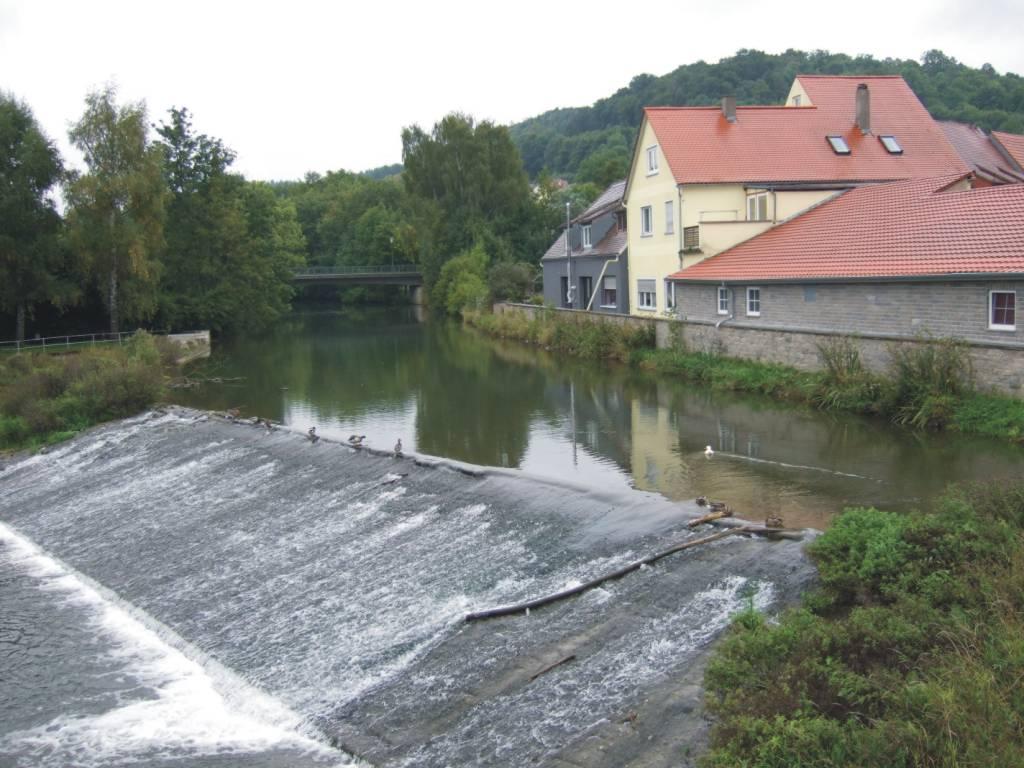 DeutschlandtourFlensburg - FüssenTag 14: Kitzingen-Albrechtshofen - Creglingen - 15.09.2008Vom Main ins Taubertal... Es war empfindlich kalt, als ich kurz nach 9 Uhr losfuhr. Vielleicht hätte ich doch meine Handschuhe mitnehmen sollen. Es war aber trocken, da macht die Kälte weniger aus. Zunächst setzte ich mit der Fähre auf die andere Mainseite über. Dann ging es stetig bergauf und anschließend wieder bergab durch die Weinberge nach Biebelried. Hier wollte ich einen Verwandtenbesuch machen. Dort fragte ich einen Briefträger nach der gesuchten Straße. Er kannte sich gut aus und schickte mich zwei Dörfer weiter. Der Überraschungsbesuch kam nicht so ganz überraschend, da die Besuchte am Tag zuvor am Niederrhein war und dort von meiner Radtour erfahren hatte. Die Freude war trotzdem groß. Eine gute Stunde erzählten wir bei einer leckeren Tasse Kaffee, vor allem über die Deutschlandtour. Dann wollte ich aber weiter. Etwas Ballast ließ ich dort, der von dort per Post auf den Heimweg geschickt wurde. Es ging zügig weiter bis Ochsenfurth. Noch einmal ging’s über den Main. Ich schob mein Rad durch die Stadt, um nach dem Gäuradweg Ausschau zu halten. Im Internet hatte ich davon gelesen. Es ist der Weg über die ehemalige Bahntrasse der Gäubahn, die zwischen Ochsenfurth und Röttingen (Weikersheim) verlief. Sie ist eine Querverbindung zwischen Main und Tauber. Mit etwas Suchen fand ich dann auch den Einstieg. Zunächst gab es einen Anstieg, aber dann verlief die gesamte Strecke fast eben über einen geschotterten Weg, bis es zum Taubertal wieder bergab ging. Er ließ sich gut befahren und schon kurz nach 14 Uhr erreichte ich Creglingen. Mir war immer noch kalt und deshalb machte dich dort erst mal eine Kakaopause. Als ich das Restaurant wieder verließ, regnete es. Ursprünglich hatte ich geplant, bis Rotenburg durchzufahren, aber bei dem Wetter überlegte ich es mir anders. Direkt neben dem Lokal war die Touristeninformation. Das paßte ja gut. Nach wenigen Minuten hatte ich ein Zimmer für die Nacht. So früh hatte ich bisher noch nie Schluß gemacht. Später lief ich noch eine Runde durch die kleine Stadt, was aber bei dem Wetter keinen Spaß machte. Es gab auch nicht sehr viel zu sehen. Abends habe ich dann im Gasthof lecker gegessen und mich anschließend gemütlich vor den Fernseher gesetzt.