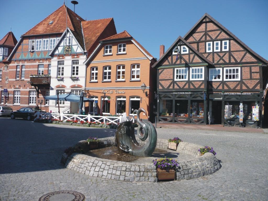 Elberadweg, Teil 2Magdeburg - CuxhavenTag 5: Damnatz - Hohnstorf - 24.06.2009Fährfahrten... Heute gab es zur Abwechslung mal wieder ein leckeres Frühstücksbuffet. Beim Blick aus dem Fenster sahen wir, daß sich die Bäume kräftig im Wind bewegten. Jetzt blieb nur noch die Frage, aus welcher Richtung bläst der Wind? Die Antwort kam direkt nach dem Losfahren, er kam aus Nord-Ost, d.h. meist von der Seite, oder je nachdem welchen Bogen der Weg machte auch gerne mal von vorne. Da hieß es dann, Zähne zusammenbeißen und kräftig in die Pedale treten. Trotzdem lief es zunächst recht flott. Schon gegen 10.30 Uhr erreichten wir Hitzacker. Wir waren aber auch bereits gegen 9 Uhr gestartet. Nun wurden erst mal ein paar Ansichtskarten gekauft. Dann bekam mein Rad etwas mehr Luft und einen kurzen Check, da meiner Meinung nach das Tretlager seltsame Geräusche machte. Der Fahrradmechaniker meinte aber, die kämen von der Schaltung, sie müßte demnächst mal neu eingestellt werden. Wir machten anschließend noch ein paar Getränkeeinkäufe und Hildegard besorgte sich eine neue Speicherkarte für den Fotoapparat. So ausgerüstet sahen wir uns schiebenderweise noch die malerische Innenstadt an. Bevor es auf die Fähre ging, machten wir im Hafen noch eine kleine Trinkpause. Kurz vor 12 Uhr setzten wir dann mit der kleinen Fähre über. Ein junger Radfahrer war mit an Bord. Er war innerhalb von drei Wochen von Ulm nach Prag und dann den Elberadweg bis hier gefahren. Er wollte heute noch bis Hamburg durchfahren. Das wären insgesamt 160 km an diesem Tag. Mir stand vor Erfurcht fast der Mund offen, aber Hildegard meinte, wir bräuchten uns auch nicht zu schämen. Wo sie Recht hat, hat sie Recht. Der Weg verlief dann ca. 14 km bis Darchau über einen neuen Deichweg. Der Wind bremste mal wieder und auch sonst war die Strecke eher eintönig. Trotzdem war es für uns bestimmt besser, auf der rechten Elbeseite zu fahren, als über die Hügel oder Berge, die sich auf diesem Abschnitt auf der anderen Elbeseite befinden. Die vielen schwarzen Pfeile auf der Karte schreckten uns doch sehr ab. Wir bewunderten in solchem Fall die Berge lieber aus sicherer Entfernung. Nachdem wir in Darchau wieder, mittels Fähre, auf die andere Seite geschwommen waren, machten wir in Neu Darchau eine kurze Mittagspause. Dann fuhren wir weiter bis Bleckede. Jetzt verlief der Weg oft durch Wald. Hier konnte der Wind uns nichts anhaben und wir steigerten unsere Geschwindigkeit um ein Vielfaches. Nach der flotten Fahrt gönnten wir uns in Bleckede einen Eisbecher und orderten von dort aus telefonisch ein Zimmer in Hohnstorf. Die nächsten 7 km mußten wir dann wieder gegen den Wind ankämpfen. Dann machten die Elbe und somit auch der Weg einen Knick nach Westen und unsere Reisegeschwindigkeit steigerte sich direkt wieder. So macht Radfahren Spaß. Kurz vor 18 Uhr erreichten wir dann, mal wieder mit Unterstützung eines freundlichen einheimischen Radfahrers, unser Ziel. Wir hatten die Auswahl zwischen mehreren Zimmern und entschieden uns für ein großes Appartement. Nach dem Duschen ging es mit den leeren und ungewöhnlich leichten Rädern über die Brücke nach Lauenburg. Bis wir die Altstadt erreichten, mußten wir erst mal über eine arge Holperstrecke aus altem Kopfsteinpflaster. In der Stadt gab es wieder reichlich schöne Fotomotive. Direkt am Hafen ließen wir den Tag bei einem leckeren Essen ausklingen.