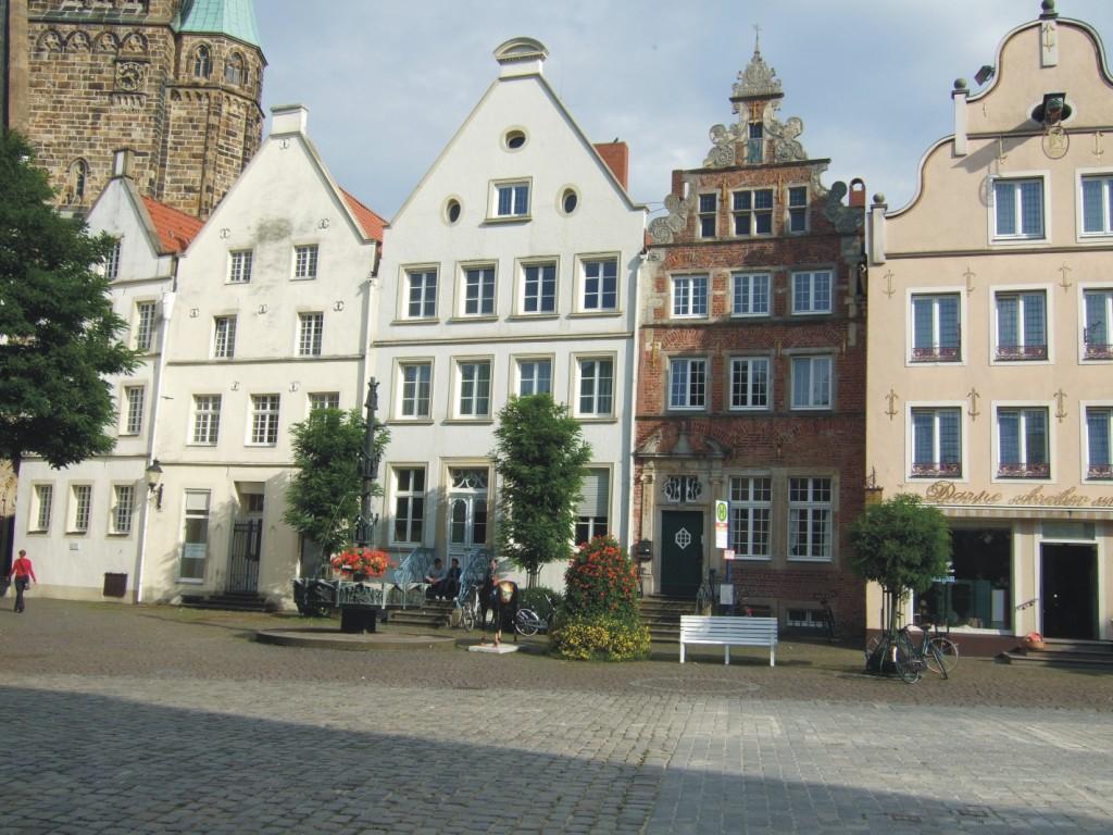 EmsradwegHövelhof - EmdenTag 2: Rietberg - Telgte - 07.09.2009Blumen, Parks und Fachwerkhäuser... Der Tag fing gut an: blauer Himmel, kein Wind und angenehme Temperaturen. Das Frühstück war lecker und reichhaltig und wir wurden aufgefordert, die überzähligen Bötchen mitzunehmen, da die Wirtin nicht alle selber essen konnte. Das taten wir dann auch. Gegen 10 Uhr verließen wir Rietberg. Vorher waren wir noch kurz an einer Tankstelle, um Luft zu tanken. Das geht mit Kompressor leichter als per Hand. Von Rietberg aus führte der Weg zuerst nach Wiedenbrück und ohne große Unterbrechung nach Rheda. Beide Städte hatten wieder reichlich Fotomotive zu bieten. Es gab wieder schön restaurierte Fachwerkhäuser und wunderschöne Parks, durch die der Radweg führte. Die Parks waren nicht nur für Erwachsene schön angelegt, sondern boten auch für Kinder tolle Spielplätze. In Rheda wurde mal wieder an Radwegschildern gespart. Das verhalf uns zu einigen zusätzlichen Kilometern. Wir hatten zwar in einer Bäckerei nachgefragt, da aber die Verkäuferin nicht aus der Stadt kam, führte uns ihr Hinweis in die Irre. Es war mittlerweile Mittag geworden und wir hielten Ausschau nach einer Bank, um unsere Brötchen zu verspeisen. Auch daran war gespart worden. Einige Kilometer weiter fanden wir dann doch noch einen Picknickplatz. Wir fuhren dann gestärkt bis Marienfeld. Am Ortseingang tranken wir in einer Bäckerei einen Kaffee. Von Marienfeld fuhren wir dann zügig nach Harsewinkel. Dort machten wir eine ausgiebige Eispause. Vorher hatten wir überlegt, nur bis Warendorf zu fahren, da es aber prima lief, buchten wir telefonisch eine Übernachtung in Telgte. Harsewinkel kam mir nach den vielen Jahren, seit dem ich mit Hildegard die erste Radtour, den R1 Radweg, gefahren bin, nicht mehr sehr bekannt vor, lediglich der Spruch: „runter vom Sofa, rein in die Kneipe“, stand immer noch an einer Gaststätte. Es ging nun weiter in Richtung Warendorf. Einige Kilometer vor der Stadt kamen wir an einem riesigen Anwesen vorbei, das gerade gebaut wurde. „Was soll das werden?“ fragten wir uns. Es waren mehrere große rietgedeckte Gebäude, die mit aufwendigem Fachwerk und vielen Erkern und Türmchen versehen waren. Wir vermuteten, es würde ein Nobelhotel werden. Wir fragten einen Radfahrer, der uns erzählte, es gehöre einem „Sklaventreiber“, der mit Leiharbeitern sein Geld verdiene. Die Genehmigung für die Wohngebäude sei zurückgezogen worden und es würden jetzt noble Pferdeställe daraus. Wir kamen dann nach Warendorf. Dort war ich schon einige Male, aber den historischen Marktplatz hatte ich bisher noch nicht gesehen. Er war sehenswert und wurde von uns in Bild und Ton festgehalten. Gegen 18.15 Uhr erreichten wir unser Tagesziel: Telgte. In einem schönen alten Gasthof erhielten wir ein Zimmer. Es ist ja immer wieder spannend, weil man nie weiß, wo man landet. Nachdem wir uns frisch gemacht hatten, drehten wir zu Fuß noch eine Runde durch das nette Städtchen und gönnten uns ein leckeres Abendessen.