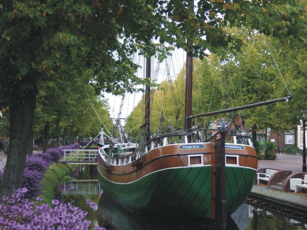 EmsradwegHövelhof - EmdenTag 4: Haaren - Papenburg - 09.09.2009In der Fehnkolonie... Nach einem, wie erwartet guten Frühstück, ging es gegen 10 Uhr los. Leider war es grau in grau, aber zum Glück trocken. Wir fuhren zuerst eine kleine Runde durch das Feriendorf und dann zum Stadtzentrum. Dort schauten wir uns den Emslanddom an. Anschließend ging es wieder auf den Emsradweg. Zuerst führte der Weg am Hafen und an einer kleinen Werft vorbei. Jetzt hatte ich das Gefühl, im Norden zu sein. Einige Kilometer weiter konnte man die Landschaft von einem hölzernen Aussichtsturm aus betrachten. Bis Lathen verlief der Weg in der Nähe des Flusses. Dort machten wir eine kurze Kaffeepause. Danach ging es auf einem schnurgeraden, geschotterten Weg am Dortmund-Ems-Kanal entlang. Plötzlich kam es zu einer überraschenden Begegnung. Ein junger Igel war ebenfalls auf dem Emsradweg unterwegs, natürlich zu Fuß. Als er uns kommen sah, rollte er sich ein und stellte sich tot. Wir haben so lange ruhig dagestanden und gewartet, bis er sich traute weiter zu laufen. Dieser Streß hatte ihn anscheinend so mitgenommen, daß er sich ein paar Meter weiter ins Gras legte und auf der Stelle einschlief. Wir fuhren weiter bis Heede. Dort verließen wir für den Radweg und fuhren an der Landstraße entlang weiter. Hier rollte es entschieden besser. In Aschendorf machten wir nochmals eine kurze Pause und danach ging es weiter auf die letzten Kilometer bis Papenburg. Die Touristeninformation war auf einem alten Segelschiff untergebracht. Es lag sehr malerisch auf dem Hauptkanal direkt vor dem schönen Rathaus. Dort vermittelte uns eine freundliche junge Frau ein Zimmer für eine Nacht. Leider lag das etwas außerhalb des Zentrums und so mußten wir noch ein paar Kilometer fahren. Wir waren etwas früh dran und um die Zeit zu überbrücken, probierten wir in einem kleinen Straßencafe ein Stück Ostfriesentorte. Es handelt sich dabei um Kuchen mit in Rum eingelegten Rosinen. Wir unterhielten uns derweil mit zwei original Papenburger Ostfriesen. Sie gaben uns einige Tips für den morgigen Tag und für das heutige Abendessen. Gegen 18 Uhr bezogen wir dann unser Zimmer in der Privatpension in einem kleinen Siedlungshaus. Es hatte keine 3-Sterne-Ausstattung, aber das hatten wir ja auch nicht erwartet. Nach dem Duschen fuhren wir noch zu einem netten Gasthof, den uns die beiden vorhin empfohlen hatten und wurden nicht enttäuscht.