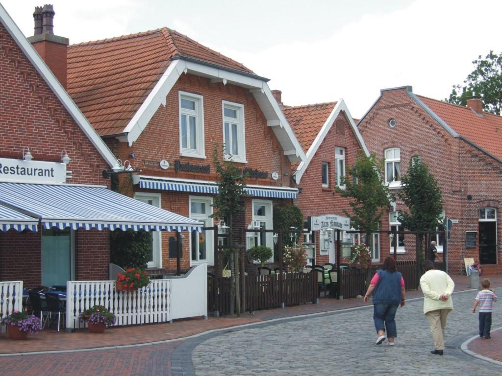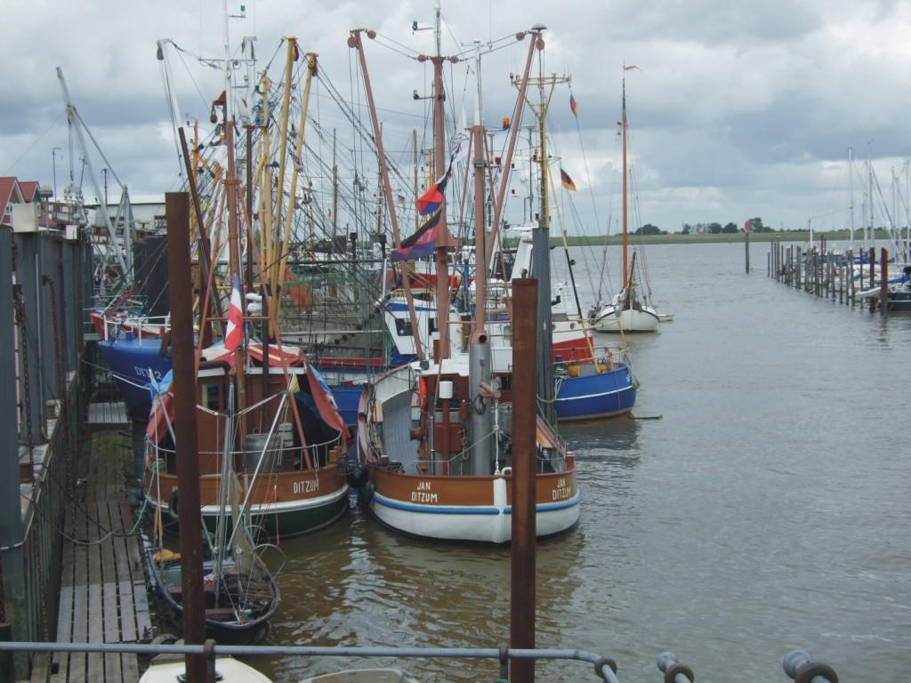 EmsradwegHövelhof - EmdenTag 6: Leer - Emden - 11.09.2009Kein Bett in Emden... Heute wurde uns das Frühstück im Zimmer serviert. Wenn es wärmer gewesen wäre, hätten wir sogar in der großen Loggia frühstücken können. Vor der Abfahrt unterhielten wir uns noch eine Weile mit unseren Gastgebern und kamen deshalb auch erst gegen 10.30 Uhr weg. Wir mußten noch einmal komplett durch die Stadt fahren, bevor wir die Emsbrücke erreichten. Sie war längere Zeit umgebaut worden und war gerade erst wieder für den Verkehr freigegeben worden. Jetzt paßten auch sehr große Schiffe durch sie hindurch. Der Deichweg war recht eintönig und da der Wind wieder aus nördlicher Richtung kam, wurde man dort auch kräftig ausgebremst. Wir fuhren deshalb auf einem Radweg entlang der Landstraße. So kamen wir auch durch einige nette kleine Orte. In Midlum sahen wir uns den schiefen Glockenturm der Kirche genauer an. Er war kräftig zur Seite abgesackt, aber mit Beton und Eisenträgern gegen weiteres Absacken gesichert. Einige Kilometer weiter machten wir dann eine ausgiebige Kaffeepause in einem Bauerncafe. Es war ruhig und friedlich und noch richtig ländlich. Mehrere Hunde machten ihren Nachmittagsspaziergang ganz alleine durchs Dorf. Sie wirkten aber ruhig und gelassen und führten bestimmt kein „Hundeleben“. Kurz nach 14 Uhr erreichten wir Ditzum. Gerade als wir den Hafen erreichten, fuhr die Fähre ab. So hatten wir fast eine Stunde Wartezeit. Klaus holte sich ein paar Heringe als Pausenbrot. Nach der etwa 15minütigen Überfahrt erreichten wir Petkum. Dort wurde uns ziemlich aufdringlich von einem ältern Herrn empfohlen, den Gasthof im Ort zu nehmen. Wir fuhren aber trotzdem weiter bis zur Emdener Innenstadt. Bei der Touristeninformation wurden wir aber enttäuscht. Es gab keine freien, bezahlbaren Zimmer in der Stadt. So verzichteten wir auf einen Stadtbummel und fuhren direkt zum Bahnhof. Etwa 40 Minuten später fuhren wir mit dem „Quer durchs Land Ticket“ nach Hause.