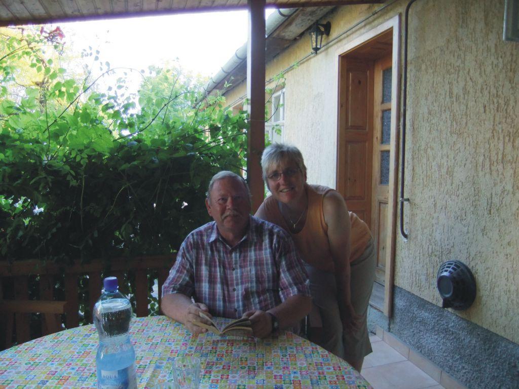 Donauradweg 4Wien - BudapestTag 4: Mosonmagyarovar - Bana - 10.07.2010Italienisches Flair in Györ... Heute waren wir bereits um 9.15 Uhr startklar. Das Frühstück war zwar nicht so reichhaltig wie am Vortag, aber bedeutend besser als in Wien. Unser Weg führte zunächst über Halaszi bis Hedervar. Wenige Meter hinter dem Schloß machten wir in einem netten Gasthof eine Trinkpause. Bei diesem Wetter verdunstet die Apfelschorle im Körper, sobald sie durch die Kehle gelaufen ist. Danach ging es weiter bis Györ. Wir hielten unterwegs immer wieder kurz an, um Flüssigkeit nachzutanken. Gegen 12.30 Uhr erreichten wir die Stadt. Über eine eiserne Brücke, die eine gewisse Ähnlichkeit mit dem blauen Wunder in Dresden hat, fuhren wir in die Innenstadt. Es war Markt. Kurz vor Toresschluß erstanden wir Äpfel, Pfirsiche und Aprikosen. Die Aprikosen probierten wir direkt. Sie schmeckten hervorragend. Wir fuhren dann zum Szechenyiter, einem großen Platz, der von einer Benediktinerkirche mit zwei imposanten Türmen beherrscht wird. In der Mitte des Platzes befindet sich eine Mariensäule. Ein magischer Anziehungspunkt für Kinder waren die Wasserspiele auf dem Platz. Das Wasser spritzte in unregelmäßiger Folge aus Düsen am Boden. Die Kinder hatten einen riesigen Spaß, wenn sie durch die Wassersäulen liefen. Da wäre man gerne noch mal Kind! An einer Seite des Platzes befanden sich Restaurants und Cafes. Viele Menschen saßen an Tischen unter großen Sonnenschirmen und genossen den Sommer. Es hatte etwas von Italien. Wir gönnten uns ein Eis und anschließend Kaffee und Tee und beobachteten das Treiben. Nach zwei Stunden Siesta rafften wir uns auf und schoben die Räder durch die Fußgängerzone. Ein Thermometer zeigte 33° C im Schatten. Dann begann die Suche nach dem Radweg in Richtung Babolna. Wir fuhren einmal in großem Bogen um eine riesiges Einkaufzentrum. Eine freundliche Frau erklärte uns, daß wir in der verkehrten Richtung unterwegs seien. Also Kehrtwendung um 180°. Klaus wollte dann ein paar Meter abkürzen mit dem Ergebnis, daß wir in einem Industriegebiet landeten. Der Schweiß rann in Strömen. Wenn wir doch nur etwas ungarisch lesen könnten! Mit Händen und Füßen fragten wir ein paar junge Männer nach dem Weg. Wieder mußten wir ein Stück zurück und außerdem noch einen kleinen Hügel hinauf. Wir gelangten auf eine Landstraße. Dort fragten wir ein Pärchen auf Rädern, ob wir richtig seien. Der Mann sprach recht gut deutsch und hatte zudem noch eine Karte dabei. Unsere Bikelinekarte zeigt ja nur einen begrenzten Kartenausschnitt an, auf der unser Standort nicht mehr eingezeichnet war. Die beiden wollten in die gleiche Richtung. So ging es dann mit neuem Mut auf der Landstraße weiter. Glücklicherweise standen am Straßenrand Bäume und Büsche, so daß wir etwas Schatten hatten. Die Landschaft war ansonsten überwiegend flach. Große Getreide und Sonnenblumenfelder beherrschten das Bild. Leider gab es hier keinen Radweg. Es herrschte reger Autoverkehr. Trotzdem erreichten wir wohlbehalten Bönyretalap. Dort machten wir an einem Kiosk eine kurze Pause. Nach der kleinen Erfrischung ging’s wieder weiter. Für heute hatten wir genügend Kilometer geschafft. Deshalb hielten jetzt nach Schildern mit : Zimmer frei Ausschau. Im nächsten Ort wurden wir fündig. Beim ersten Schild hielten wir an und schellten am Gartentor. Freundlich bellend und schwanzwedelnd begrüßte uns ein großer schwarzer Hund. Sein Frauchen kam direkt hinterher. Unsere Unterhaltung ging in Zeichensprache vonstatten. Unsere Frage nach einem Restaurant im Ort für das Abendessen wurde verneint. Hungrig wollten wir nicht schlafen gehen. Enttäuscht wollten wir schon weiterfahren, da bot uns die freundliche Hausherrin an, für uns Letscho zu kochen. Das war ja super. Wir nahmen das Angebot dankend an. Das Zimmer mit Dusche war groß und kühl und hatte alles, was wir brauchten. Zuerst tranken wir ein kühles Bier und eine große Flasche Wasser auf der Terrasse. Nach dem Duschen wurde uns eine große Pfanne Letscho serviert. Es bestand aus viel Rührei, Speck und Paprika. Dazu gab es Brot. Es hat prima geschmeckt und wir haben es restlos aufgegessen. Mit Hilfe eines Wörterbuchs kam auch eine Unterhaltung zustande. Die ganze Atmosphäre war sehr familiär. Der Hofhund Mischa schloß mit uns Freundschaft. Eine Katze machte es sich ebenfalls auf der Terrasse gemütlich. Das Haus besaß einen großen Garten. Alles wirkte ländlich und ruhig. So hatten wir uns Ungarn vorgestellt. Leider hatten uns die Mücken mal wieder zum Fressen gern. So wurde der Abend im Freien nicht allzu lang.