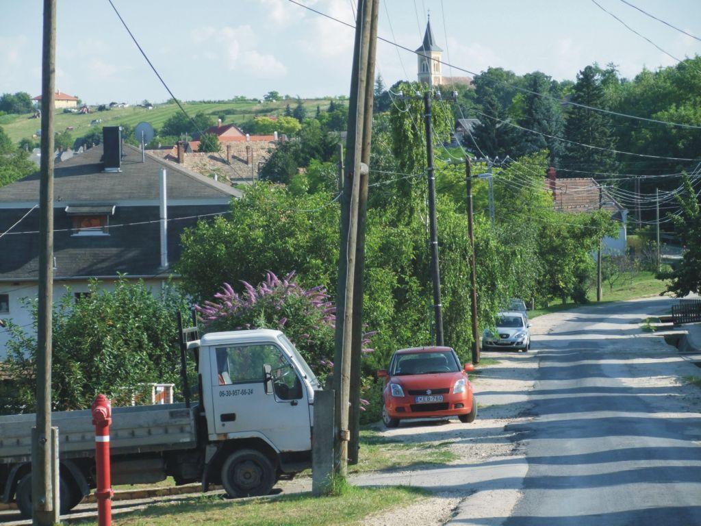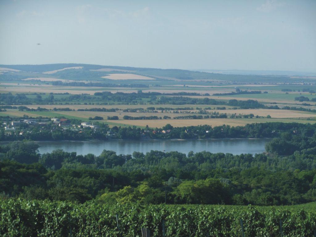 Donauradweg 4Wien - BudapestTag 5: Bana - Labatlan - 11.07.2010Über die Weinberge... Nach einem guten Frühstück auf der Terrasse ging es gegen 9.45 Uhr los. Zügig erreichten wir Babolna. Den Besuch des Pferdegestüts schenkten wir uns. Im Nachhinein war es wohl ein Fehler. Es soll sehr schön sein. Wir wollten aber heute erst mal ein paar km hinter uns bringen und nicht direkt mit einer großen Pause anfangen. Wir fuhren nicht die Hauptroute über Komaron, sondern nahmen den direkten Weg nach Tata. Auf den riesigen Feldern wuchsen, genau wie an den vergangenen Tagen, Mais, Getreide und Sonnenblumen; jedoch war das Gelände leicht hügelig. Zusammen mit den hohen Temperaturen war der Weg ziemlich schweißtreibend. Teilweise sind wir ein Stück gelaufen. In Kocs machten wir um Punkt 12 Uhr eine Trinkpause. Die Getränke, die wir mit hatten, waren nach kurzer Zeit lauwarm und schmeckten dementsprechend. Da tat es gut, wenn es in einer Dorfkneipe gekühlte Getränke gab. Derart erfrischt ging es dann weiter bis Tata. Im Reiseführer wurde die Stadt in den höchsten Tönen angepriesen. Wir waren neugierig und freuten uns schon auf eine längere Pause. Zunächst erreichten wir die Pfarrkirche Heiligenkreuz. Danach führte der Weg durch einen kleinen Park zum Öreg-to, einem großen See (der Alte See), und weiter zur Burg Tata. Dort herrschte lebhafter Touristenbetrieb und die vorhandenen Gastronomie schien dementsprechend teuer zu sein. Wir fuhren um die Burg herum und wollten dann ins Stadtzentrum, um dort etwas zu essen und zu trinken. Wir fanden aber nichts. Ein junges Pärchen erklärte uns den Weg zum englischen Garten. Dort befindet sich ein kleiner See. Wir freuten uns schon auf etwas Leckeres, aber außer einer kleinen Imbißstube, die nur Getränke verkaufte, gab’s dort auch nichts. Nach einer kurzen Pause fuhren wir etwas enttäuscht weiter. Heute wollten wir nicht weit fahren. Wir hatten Szomod oder Dunaszentmiklos als Tagesziel angedacht. Klaus schaffte die Steigung nach Szomod ohne Mühe. So entschlossen wir uns bis zum nächsten Ort weiter zu fahren. An fahren war aber bald nicht mehr zu denken. Gute drei Kilometer sind wir gekrochen. Es ging stetig bergauf. Die Sonne brannte, die Fahrräder waren schwer und wir schwitzten wie in der Sauna. Alle paar Meter mußten wir stehen bleiben und etwas lauwarmes Wasser trinken. Der Asphalt war so heiß, daß Klaus beim Absteigen sogar einen Fußabdruck hinterließ. Einige Radfahrer ohne Gepäck überholten uns fahrenderweise. Nach einer Ewigkeit hatten auch wir es geschafft und kamen in Dunaszentmiklos an. Für Autos war das letzte Stück den Weges gesperrt. Das hatte einen guten Grund. Die Straße und einige Häuser waren durch einen Erdrutsch, infolge starken Regens, abgesackt! Die betroffenen Häuser sind unbewohnbar und müssen wohl abgerissen werden. Die Aussicht von hier oben war sehr schön. In einem netten Restaurant tranken wir einen Kaffee bzw. Tee. Dort gab es aber keine Fremdenzimmer. Der Wirt zeigte uns den Weg zu einer Pension. Leider erreichten wir dort niemanden. Auch telefonische Versuche, eine Unterkunft in diesem Ort zu finden, schlugen fehl. Es blieb uns nichts anderes übrig, als weiter zu fahren. Wir mußten nur noch einen kleinen Anstieg bewältigen. Dann hatten wir einen wunderbaren Ausblick auf die Donau, die Weinberge und das gegenüberliegende tschechische Ufer. Es gab hier zwar ein sehr schönes Hotel, aber da der Weg jetzt nur noch bergab ging, entschieden wir uns, bis zum nächsten Ort weiter zu fahren. Das ging aber trotzdem nur langsam, da der Weg in einem sehr schlechten Zustand war. Als wir die Bundesstraße erreicht hatten, suchten wir verstärkt nach einem Zimmer. Erst in Labatlan hatten wir Erfolg. Kurz vor Toresschluß fanden wir ein Hotel direkt am Donauufer. Wir erhielten ein Zimmer, das etwas muffig roch, aber jetzt hatten wir keinen Nerv mehr weiter zu fahren. Die Küche hatte eigentlich auch schon geschlossen. Wir bekamen aber trotzdem noch auf die schnelle Schnitzel mit Pommes. Der Kellner war sehr freundlich und sprach gut deutsch. Wir konnten noch ein paar Getränke bunkern. Dann verließ die komplette Hotelmannschaft das Haus. Jetzt waren nur noch eine fünfköpfige österreichische Familie und wir im Haus. Sie waren ebenso wie wir auf Radtour. Unsere Fahrräder standen übrigens im Gastraum.