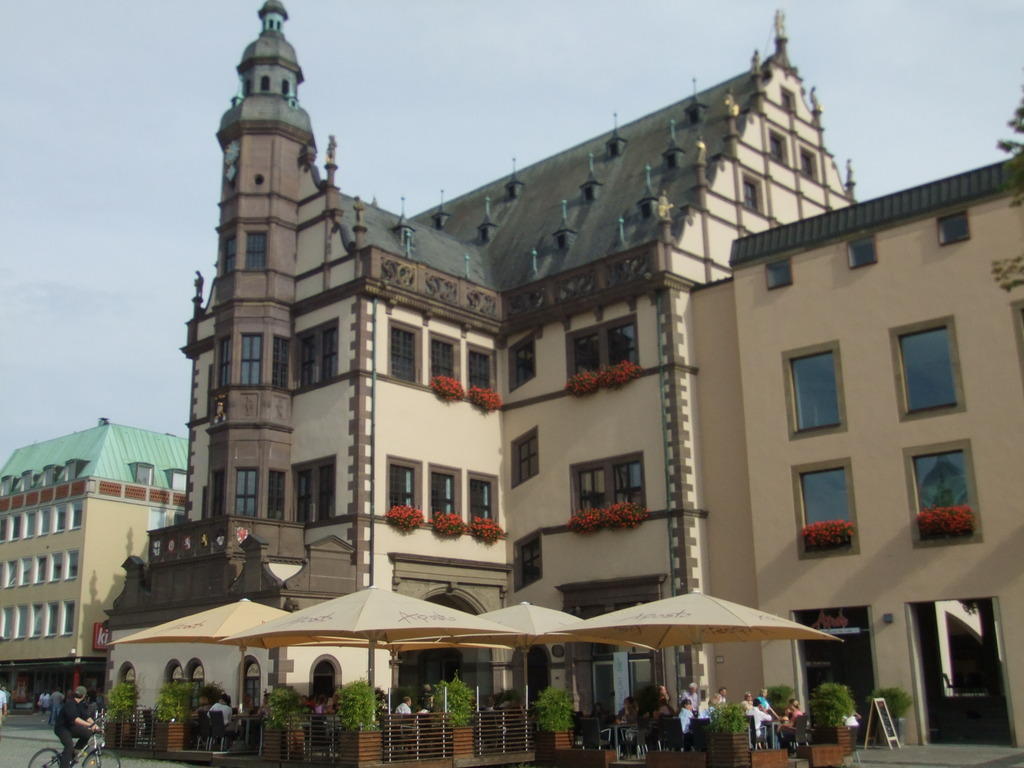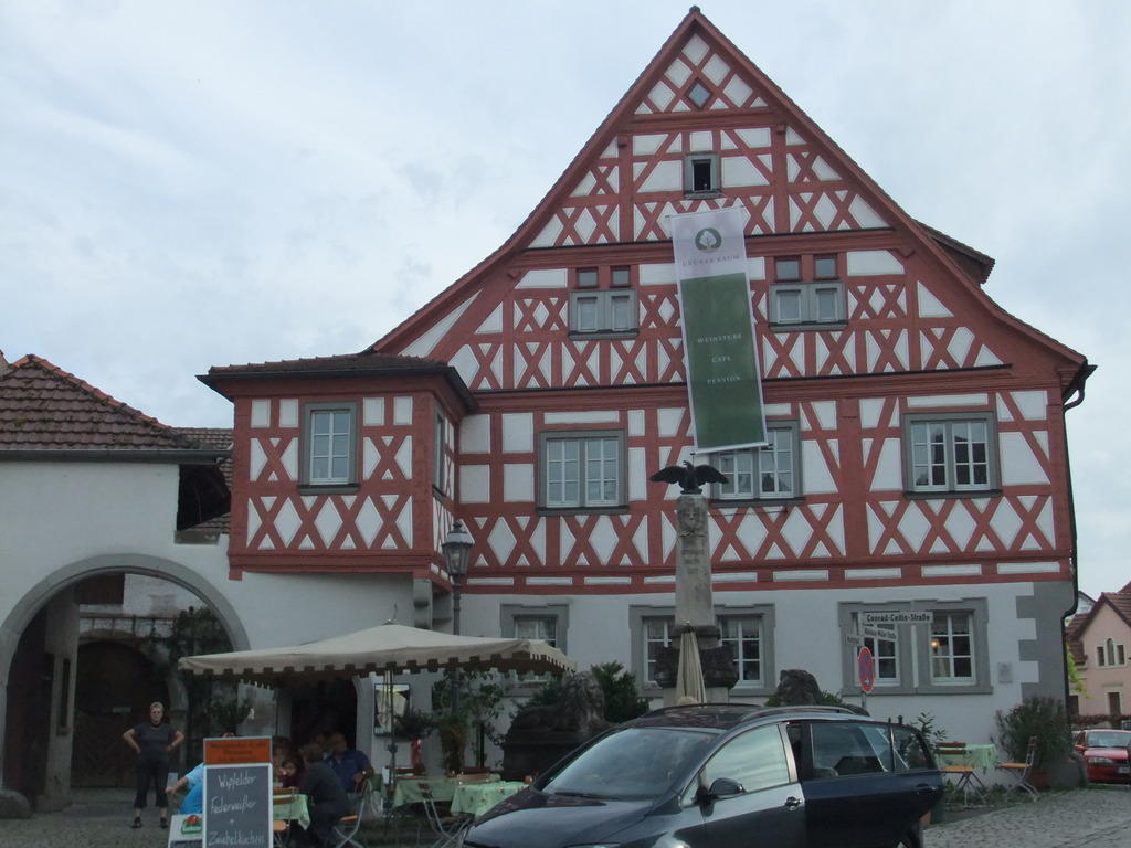 Mainradweg 1Bayreuth - WürzburgTag 5: Bamberg - Wipfeld - 12.09.2010Schönwetterradeln... Unser Zimmer war sehr klein. Das lag daran, dass wir in einem historischen Gasthof übernachteten. Die Handtücher waren möglicherweise aus dem vergangenen Jahrtausend. Sie waren sauber, aber sehr verschlissen. Man hätte sie gut für die Radpflege benutzen können. Das Frühstück dagegen war schon dem 2. Jahrtausend angemessen. Unseren Radweg fanden wir auf Anhieb. Heute lief es wieder wunderbar. Das Wetter war schön. Schon um 11 Uhr konnte ich meine Jacke gegen eine kurzarmige Weste tauschen. Eine Stunde später trennte ich die langen Hosenbeine ab. Gegen Mittag gelangten wir nach Haßfurt. Zuerst machten wir ein gemütliches Picknick am Mainufer. Zum Nachtisch gab es in der Innenstadt ein Eis. Haßfurt gefiel uns sehr gut. Wir schoben unsere Räder durch die Innenstadt und trafen zum wiederholten Mal das Ehepaar aus Siegburg wieder, dass wir zum ersten Mal in Reundorf getroffen hatte. Der Mann hatte an diesem Tag Geburtstag. Wie seine, um einiges jüngere Frau uns verraten hatte, wurde er 74 Jahre. Ich finde es bewundernswert, wenn man noch in diesem Alter solche Reisen unternimmt. Ich hoffe, das kann ich dann auch noch! Übrigens haben wir an diesem Tag auch das Männertrio vom ersten Tag wieder getroffen. Sie waren gleichzeitig mit uns an der Wallfahrtskirche Maria Limbach. Sie hatten sich jedoch in der Zwischenzeit personenmäßig verdoppelt. Von Haßfurt aus ging es dann zügig bis Schweinfurt. Es waren wieder viele Leute unterwegs. Bei dem Wetter musste man einfach den Sonntag draußen verbringen. In Schweinfurt fand gerade ein mittelalterliches Fest statt. Weil wir noch weiter wollten, schauten wir uns nur das Renaissance Rathaus an. Anschließend fuhren wir auf der nördlichen Mainseite weiter. Bei meiner Tour vor zwei Jahren, bin ich schon einmal durch Schweinfurt gekommen. Bin aber damals auf der südlichen Mainseite weiter gefahren. Der Wegabschnitt hat mir sehr gut gefallen und war mir noch in guter Erinnerung. Das erste Stück hinter der Stadt führte jetzt weiter vom Main weg und nah an einer Autobahn entlang. Außerdem führte er in einem großen Bogen um ein Kraftwerk herum. Ich bedauerte etwas, nicht wieder den südlichen Weg genommen zu haben. Nach fast 80 km machten wir in Wipfeld Schluss. Wir fanden auf Anhieb ein sehr schönes Zimmer in einem alten Gasthof mitten im Ort. Wir machten noch einen Bummel durch das kleine hübsche Winzerdorf. Nun waren wir in einer richtigen Weingegend angelangt. Hier kann man es gut aushalten. Nach dem Spaziergang aßen wir in unserem Gasthof zünftig Gerupfter und anschließend Flammkuchen. Dazu tranken wir natürlich Wein. Wir waren rundum zufrieden. Es ist wieder ein wunderschöner Tag gewesen.