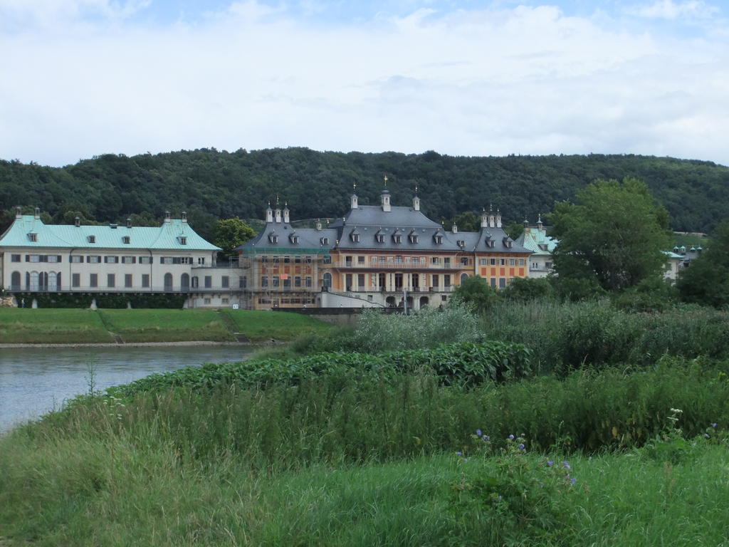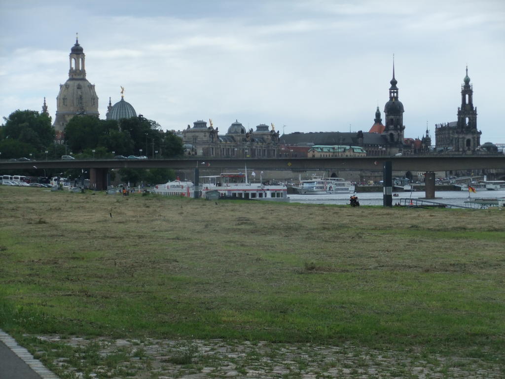 Deutschland Ost-WestZittau - AachenTag 3: Bad Schandau - Dresden - 12.07.2012Elberadweg... Obwohl eine Bahnlinie direkt am Haus entlanglief, hatte ich die Nacht geschlafen wie ein Stein. Ich war zwar einige Male aufgewacht, aber gleich wieder eingeschlafen. Das Frühstück war prima und ich durfte mir noch ein paar Brötchen für unterwegs mitnehmen. Meine Gastgeber sind wirklich nette Leute. Um 9.15 Uhr ging es los. Der Himmel war wieder mit reichlich vielen Wolken bestückt. Oft schaute dazwischen aber auch die Sonne hervor. Der Weg an der Elbe entlang war wieder traumhaft. Diesmal fuhr ich auf der linken Elbeseite. Die Cross-Strecke von vor vier Jahren war mir noch in lebhafter Erinnerung. Ich war bereits zum dritten Mal in dieser Gegend, aber trotzdem war ich vom Anblick der Feste Königstein und der Bastei überwältigt. Das Wetter hatte etwas von Aprilwetter. Es gab immer wieder kurze Schauern und der Wind blies dazu kräftig von vorne. Obwohl es keine nennenswerten Steigungen gab, mußte ich doch kräftig in die Pedale treten. Es waren viele Radler unterwegs. Der Elberadweg zählt ja auch zu den beliebtesten Flußradwegen Deutschlands. In Dresden machte ich heute Schluß mit dem Radfahren. So hatte ich Gelegenheit, mir die Stadt noch mal anzuschauen. An der Frauenkirche erklärten mir zwei freundliche Rikschafahrer den Weg zur Jugendherberge. Um 14.30 Uhr traf ich dort ein und bekam ein nettes Zweibettzimmer. Nach dem Duschen ging es dann zu Fuß in die Stadt. Es kam aber ein kräftiges Gewitter auf. Kein Cafe war in der Nähe. Obwohl ich keine neue Küche kaufen wollte, bat ich um Asyl in einem exklusiven Küchenstudio. Nach einer halben Stunde hörten Blitz und Donner auf und ich schaffte es bis zur Altstadtgalerie. Nach einer großen Tasse Kaffe ging es dann bei Nieselregen weiter, am Zwinger entlang, am Schloß und am Fürstenzug vorbei bis zur Frauenkirche. Sie ist immer noch beeindruckend, aber beim ersten Besuch empfand ich sie noch einmaliger. Viel Spaß machte der Stadtbummel bei diesem Wetter nicht und so ging ich frühzeitig zurück zur DJH.