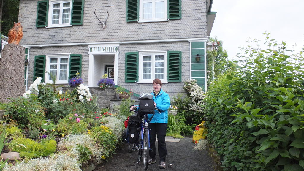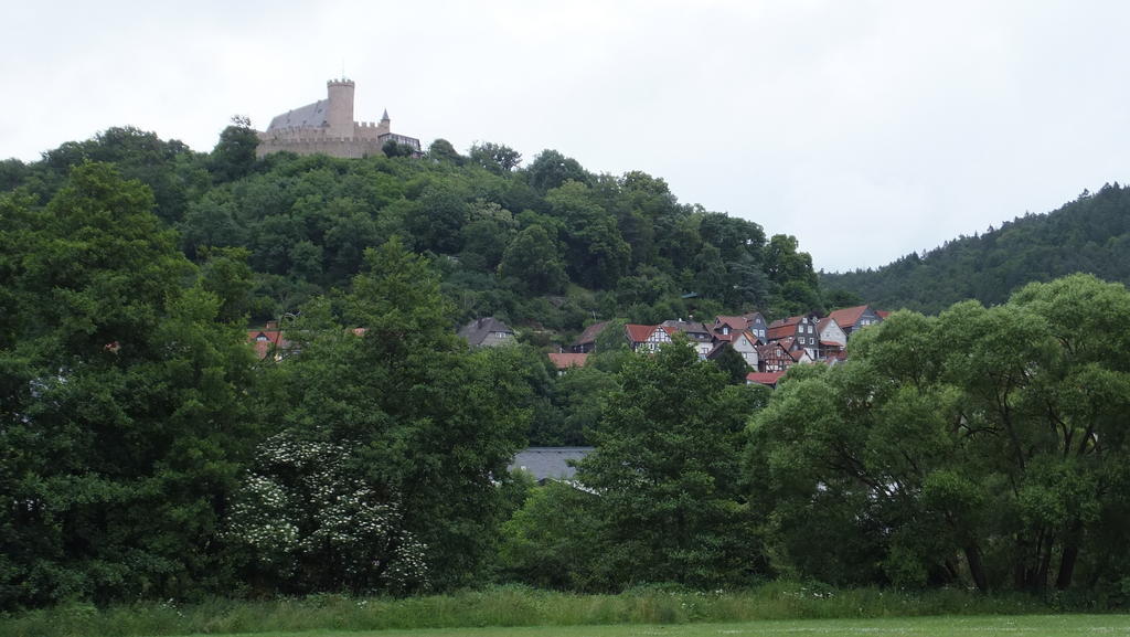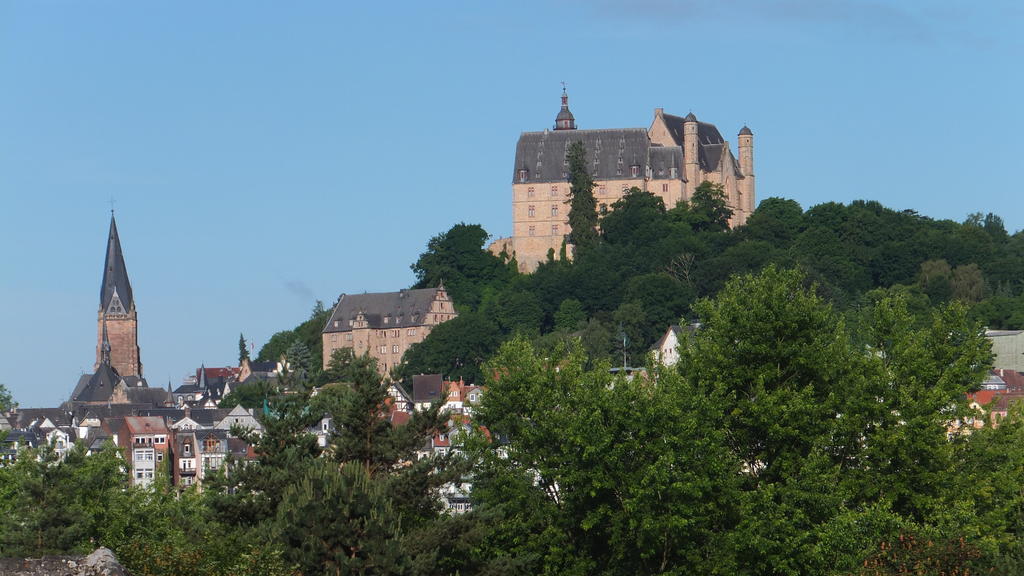 LahnradwegRudersdorf - LahnsteinTag 2: Bad Laasphe - Marburg - 25.06.2013Unangenehme Begegnung... Nach dem Frühstück, daß uns der Hausherr servierte, saßen wir gegen 9:45 Uhr auf den Rädern. Das Wetter war ähnlich wie gestern, bedeckt aber trocken. Den Einstieg auf den Radweg fanden wir schnell. Am Ortsausgang von Bad Laasphe kamen wir an einer Wiese mit Lamas vorbei. Mit diesen exotischen Tieren hätten wir hier nicht gerechnet. Heute verlief der Weg durch das flache Lahntal. Recht schnell erreichten wir Biedenkopf. Es fing leicht an zu tröpfeln und deshalb wollten wir hier eine Pause einlegen. Da der Regen aber wieder nachließ, machten wir nur einige Fotos von der Stadtansicht hoch über dem Tal und fuhren weiter. Wenig später setzte dann doch ein heftiger Regen ein. Da stand wie gerufen ein Unterstand mit Tisch und Bänke am Weg. Hier machten wir dann eine Picknickpause. Nach einer halben Stunde hörte der Regen auf und wir setzten unsere Reise fort. Der weg verlief mal rechts, mal links der Lahn. Auch die Bahngleise, die durchs Tal führten, überquerten wir das ein oder andere Mal. In Elmshausen wollten wir eine richtige Kaffeepause einlegen, zumal es ein Hinweisschild auf einen Gasthof gab. Wir fuhren kreuz und quer durch den Ort und als wir dann endlich vor dem Gasthof standen, mussten wir enttäuscht feststellen, daß er aufgegeben worden war. In Caldern fanden wir dann einen Gasthof, doch der hatte heute Ruhetag und war ansonsten erst um 17Uhr geöffnet. Wir fragten ein paar Grundschulkinder, da wir mittlerweile dringend ein WC benötigten. Sie verwiesen uns an eine Bäckerei am Ortsausgang. Hier machten wir dann unsere wohlverdiente Kaffee und Pipipause. Es wäre schön gewesen, wenn wir vorher am Radweg ein Hinweisschild gestanden hätte. die Einkehrmöglichkeiten, an denen wir später vorbei kamen hatten alle erst am Abend geöffnet. Das Wetter hielt sich. Der Himmel war grau und bedeckt, aber hin und wieder blickten blaue Stellen durch die Wolken. Einige Kilometer vor Cölbe kam uns eine aufgeregte Radfahrerin entgegen. Sie fragte, ob sie mit uns zurück nach Cölbe fahren könne. Sie hatte gerade eine unangenehme Begegnung gehabt. Sie war an einem Mann vorbei gefahren, der mit heruntergelassener Hose auf einer Bank gesessen hatte. Sie traue sich jetzt nicht mehr alleine, den Weg zurück zu fahren. Kurz bevor wir die Stelle erreichten, wo der Mann saß, kam uns eine junge Radlerin entgegen, die breit grinste und über den Anblick eher belustigt war. Als wir den Kerl erreichten und er uns kommen sah, stand er rasch auf und zog sich die Hose hoch. Es war ein älterer dicklicher Mann, der mit einem Roller unterwegs war. Wir merkten uns die Nummer und riefen einige hundert Meter weiter per Handy die Polizei an. Es war bisher ja nichts passiert, aber solchen Typen muß man Einhalt gebieten, bevor was Schlimmeres geschieht. Die Polizistin war über den Anruf nicht sonderlich begeistert und fragte auch nicht nach dem Kennzeichen, obwohl ich ihr gesagt hatte, ich hätte es notiert. Wir erreichten dann wenig später Cölbe und die Radfahrerin bedankte sich noch mal bei uns und fuhr alleine weiter. Einige Minuten später rief die Polizistin zurück und ließ sich die Nummer durchgeben. Wenig später kam uns auch ein Motorradpolizist entgegen. Wir hoffen, er hat sich den Typen mal vorgeknöpft. Von Cölbe aus waren wir ziemlich schnell in Marburg. Schon von weitem sahen wir das Landgrafenschloß. In der Nähe des Schülerparks fragten wir einen jungen Mann nach dem, Weg. Er kannte sich gut aus und wenige Minuten später hatten wir unsere Unterkunft erreicht. Die Räder kamen in die Waschküche und wir unters Dach. Wir hatten ein Zimmer mit Schloßblick. Eine dreiviertel Stunde später machten wir uns zu Fuß auf den Weg in die Altstadt. Der Größte Teil der Altstadt, die Oberstadt, liegt auf dem Berg. Wir gelangten bequem mit einem Aufzug dorthin. Die Stadt ist wirklich sehenswert. Viele groß prächtige Fachwerkhäuser gab es zu bestaunen und natürlich zu fotografieren. Wir machten uns dann noch auf den steilen Aufstieg zum Schloß. Auch der hat sich gelohnt. Von hier oben hat man einen wunderbaren Ausblick auf die Stadt und das Lahntal. Natürlich war auch das Schloß sehenswert, auch wenn wir es nur von außen anschauen konnten. Danach gingen wir zurück zur Oberstadt und fanden einen schönen alten Gasthof um zu Abend zu essen. Das Essen war hervorragend. Obwohl Marburg keine Kleinstadt ist und es reichlich Auswahl an gastronomischen Betrieben gibt, saßen die fünf Freunde aus dem Zug im gleichen Lokal. Kaum zu glauben. Gegen 22 Uhr machten wir uns auf den Weg zurück in unsere Unterkunft.