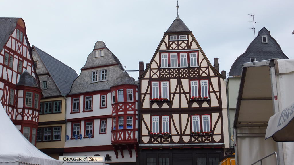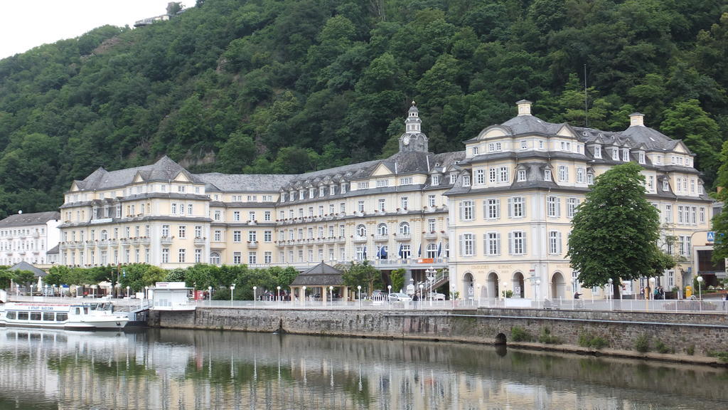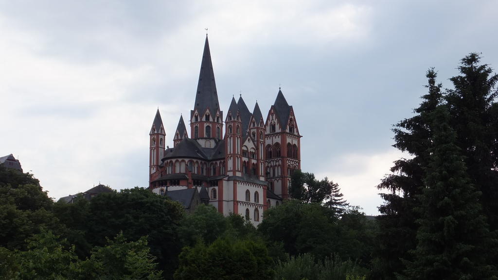 LahnradwegRudersdorf - LahnsteinTag 5: Limburg - Lahnstein - 28.06.2013Wir haben es uns verdient... Heute saß die Fünfergruppe beim Frühstück am Nebentisch und wir unterhielten uns zum ersten Mal länger mit ihnen. Es waren alles ehemalige Arbeitskollegen, die seit einigen Jahren einmal jährlich eine Radtour unternahmen. Sie wollten heute bis Koblenz fahren. Demnach war es unmöglich, daß wir wieder im gleichen Haus übernachten würden. Nach dem Frühstück konnten wir zunächst unser Gepäck und die Fahrräder im Hotel lassen, so daß wir uns in Ruhe den Dom ansehen konnten. Er ist relativ schlicht und macht einen hellen und freundlichen Eindruck. Mich erstaunte, daß er keinen Hochaltar, so wie man es in alten Kirchen erwartet, sondern nur einen Opfertisch hat. Danach bummelten wir noch etwas durch die Stadt und machten uns gegen 11 Uhr auf die letzte Etappe. Leider nieselte es bei der Abfahrt. Schon nach kurzer Zeit zog ich Regenjacke- und Hose an. Unterwegs trafen wir mehrfach ein Damentrio mit E-Bikes. Sie waren geschätzt zwischen 65 und 70 Jahren alt. Ich finde es prima, daß sie sich noch auf Radtour trauten. Ich kann mir vorstellen, wenn es später bei mir nicht mehr so gut klappt, auch mit einem E-Bike zu fahren. Die drei waren sich aber über die Wegführung nicht immer einig, was zu einigen lautstarken Diskussionen führte. Auch Gaby und Jens trafen wir heute noch mehrfach. Auf Empfehlung unseres Bikelinehefts und auch eines Hinweisschildes am Radweg, entschieden wir uns, 12,5km mit dem Zug zu fahren. Zwischen Balduinstein und Lauenburg gibt es bisher noch keinen fertigen Radweg, außerdem wäre eine starke Steigung zu bewältigen. Die gleiche Idee hatten noch andere Radfahrer, auch die beiden Nordlichter und das Damentrio. Die Warterei am Bahnhof überbrückten wir mit Kaffee to go und Erzählen. Die Bahnfahrt dauerte nur wenige Minuten in der wir es gerade schafften, die Fahrkarten am Automaten, der sich im Zug befand, zu lösen. Danach ging es zunächst immer dicht am Fluß entlang bis Obernhof. Dann kam es aber dicke. Von weitem sahen wir schon hoch oben das Kloster Arnstein, da mussten wir rauf. Es war genau so steil wie der Anstieg zur Lahnquelle, nur nicht ganz so lang. Oben angekommen gab es leider keine Einkehrmöglichkeit. Wir hatten so auf Kaffee gehofft. Die Kirche und der Klosterladen waren geöffnet. Wir besichtigten die Walfahrtkirche und ich erinnerte mich daran, daß ich als kleines Kind schon einmal mit einer sehr lieben Tante hier gewesen bin. Schade, daß sie nicht mehr lebt, ich hätte ihr gerne von der Reise berichtet. Nach einer längeren Pause ging es dann durch den Wald wieder hinab. Einige Male mussten wir aber auch wieder ein Stücken hochschieben. In Nassau mussten wir dann noch ein Stück durch eine Straßenbaustelle schieben. Danach waren die schlimmsten Anstrengen für heute vorbei. In Bad Ems hatten wir uns dann ein dickes Stück Kuchen verdient. Der Ort ist immer noch außergewöhnlich denn viele Gebäude zeugen von großen Zeiten als berühmter Kurort. An vielen Häusern nagt aber der Zahn der Zeit. Kurorte sind auch nicht mehr das was sie einst waren. Wer kann sich heute noch den Luxus einer richtigen Kur leisten? Mit neuer Energie ging es auf die letzten Kilometer unserer Radtour. Bald erreichten wir Lahnstein und die Mündung der Lahn in den Rhein. Nach einigen Erinnerungsfotos machten wir uns auf den Weg zu unserer letzten Übernachtung. Etwas unpersönlich war das Verhalten unseres Vermieters. Er forderte Vorkasse, erklärte uns den Weg zum Bahnhof, zum Abendessen in einer nahegelegenen Gaststätte und zu einer Bäckerei für das morgige Frühstück. Dann verabschiedete er sich von uns und zeigte uns noch, wo wir morgen den Schlüssel deponieren sollten. Das wars dann. Nach dem Duschen gingen wir zuerst zum Bahnhof und druckten uns die Rückfahrtmöglichkeiten aus. Danach suchten und fanden wir die Bäckerei und zum Schluß gingen wir im empfohlenen Restaurant zum Essen. Somit war unsere schöne Lahnradtour nun leider zu Ende. Am nächsten Tag trafen wir am Bahnhof in Koblenz, wie fast erwartet, nochmals die fünf Radfahrer. Hildegard meinte spaßeshalber. "Im nächsten Jahr können wir ja gleich gemeinsam planen."