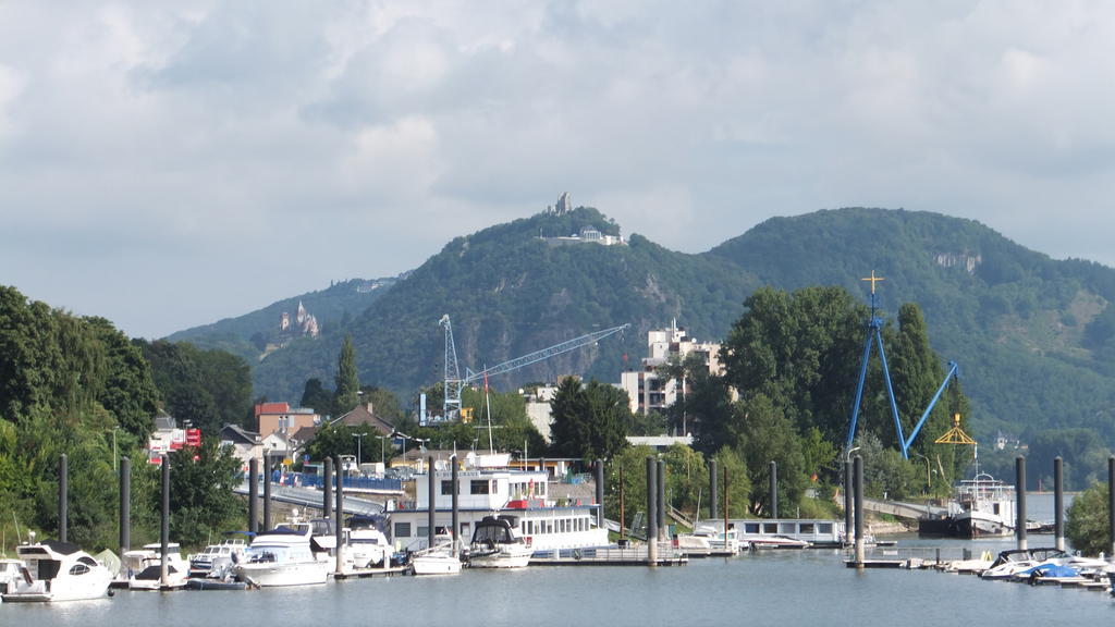 MittelrheinradwegMainz - DüsseldorfTag 5: Erpel - Köln - 10.08.2013Mit d'm Rad nach Kölle... Nach dem Frühstück beeilten wir uns zur Fähre zu gelangen. Vorher machten wir noch eine kurze Runde durch den sehenswerten mittelalterlichen Ortskern von Erpel. Als wir am Anleger ankamen, stellten wir fest, daß wir es ruhig langsamer hätten angehen können. Die Fähre kam erst in einer halben Stunde. Von Remagen aus fuhren wir linksrheinisch weiter. Ab Rolandswerth hatten wir eine schöne Sicht auf den Drachenfels und die Drachenburg. Da kamen Kindheitserinnerungen hoch. Den Ritt als Sechsjährige mit einem Esel zum Drachenfels werde ich nie vergessen. Wenig später sahen wir auch das Hotel Petersberg, das ehemalige Gästehaus der BRD. Dort sind schon viele gekrönte Häupter abgestiegen. Es ging weiter bis Bad Godesberg. Dort machten wir einen kurzen Abstecher zu einem Lebensmittelladen und versorgten uns mit Wasser und Obst. Das Wetter war wieder optimal zum Radfahren, sonnig, windstill und nicht zu heiß. Nun fuhren wir weiter bis Bonn. Auf einer Bank am Rhein machten wir ein kleines Picknick. Danach fuhren wir weiter bis Wesseling. Nun lag das romantische Rheintal hinter uns. Hier beherrschte die Öl und Chemieindustrie das Bild. Riesige Rohrleitungen, Tanks und Fabrikgebäude befanden sich rechts und links an unserem Weg. Wir wollten nun eine längere Pause einlegen, mußten aber eine Weile suchen, bis wir ein geöffnetes Lokal fanden. Klaus war etwas angeschlagen und hatte Bedenken es bis Köln zu schaffen. Ich fand 60 km als Tagesetappe aber nicht zu viel, zumal ja keine Steigungen mehr vor uns lagen. Klaus hatte sich nach der Pause etwas erholt Über die Touristeninformation buchten wir tel. ein Zimmer in Köln. Jetzt nahmen wir die letzten 20 km in Angriff. Wir kürzten die Strecke um einen Rheinbogen ab und fuhren auf direktem Weg nach Rodenkirchen und gelangten zügig nach Köln. Wir fanden auf Anhieb unser Hotel. Es lag sehr zentral. Nachdem wir uns stadtfein gemacht hatten, ging es zu Fuß in die Stadt. Nach wenigen hundert Metern waren wir mitten im Zentrum. Es wimmelte von Menschen. In einem Straßencafe tranken wir einen Kaffee und beobachteten das Treiben. Besonders lustig fanden wir die vielen Gruppen, die ihren Junggesellenabschied feierten. Einige hatten sich sehr phantasievoll angezogen, doch die zukünftige Braut, oder der Bräutigam musste sich oft lächerlich machen und außerdem versuchen, unnütze Dinge an Passanten zu verkaufen. Wir gingen natürlich auch zum Dom. Ein Kölnbesuch ohne am Dom gewesen zu sein geht nicht. Hier sieht man Menschen aus der ganzen Welt. Der Dom gehört nicht ohne Grund zum Weltkulturerbe und ist eines der berühmtesten Gebäude Deutschlands. Anschließend gingen wir zum Rheinufer, danach zum Heumarkt. In einer alten Brauereigaststätte ergatterten wir den letzten Platz. Der Köbes hatte reichlich zu tun, zumal das Kölsch ja nur in 0,2 l Gläsern ausgeschenkt wird. So mußte er noch mehr laufen, wenn seine Gäste großen Durst hatten. Bei einem typisch rheinischen Essen ließen wir den Abend ausklingen.