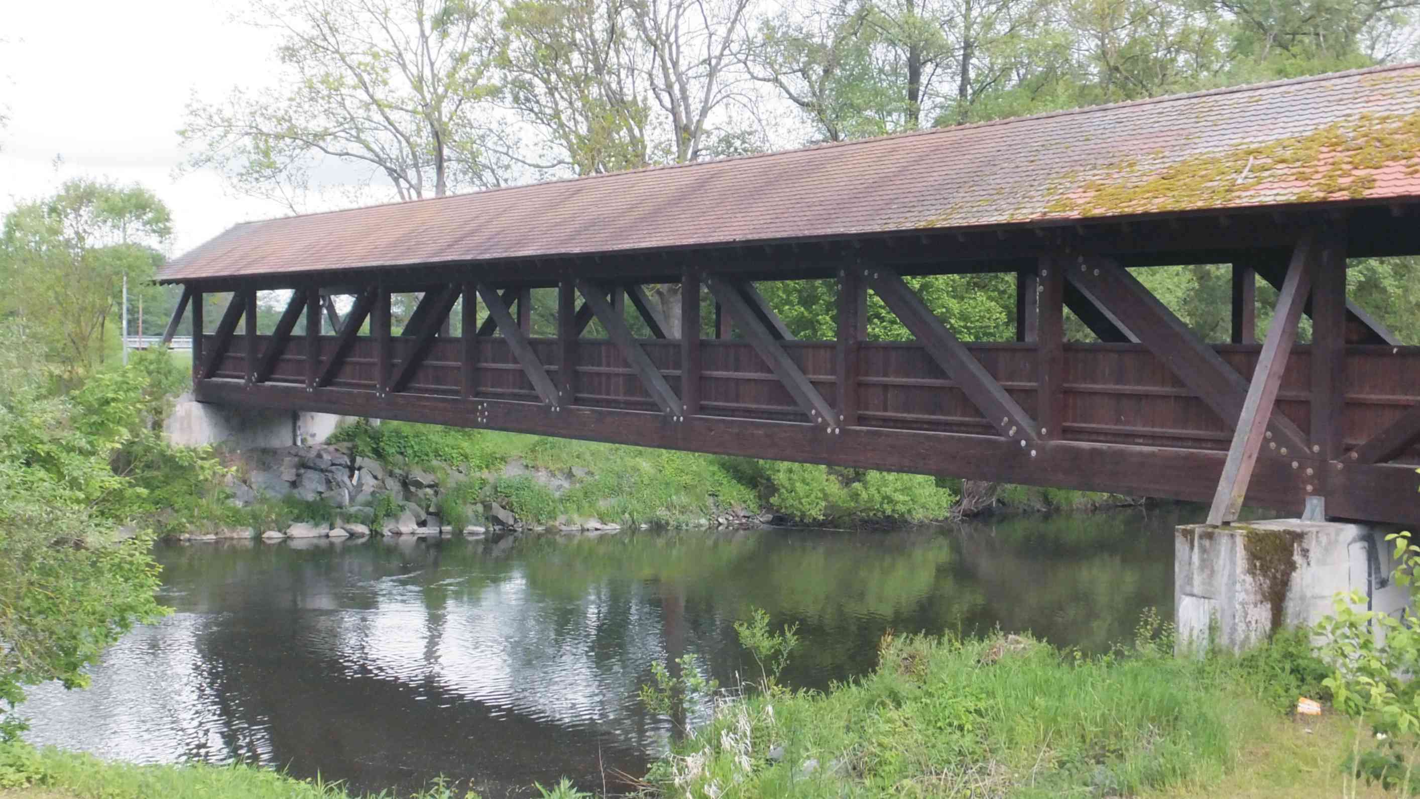Danach führte unsere Strecke an vielen Seen und Angelteichen vorbei bis Mainleus. Am Ortsende überquerten wir auf einer schönen Holzbrücke den Main.