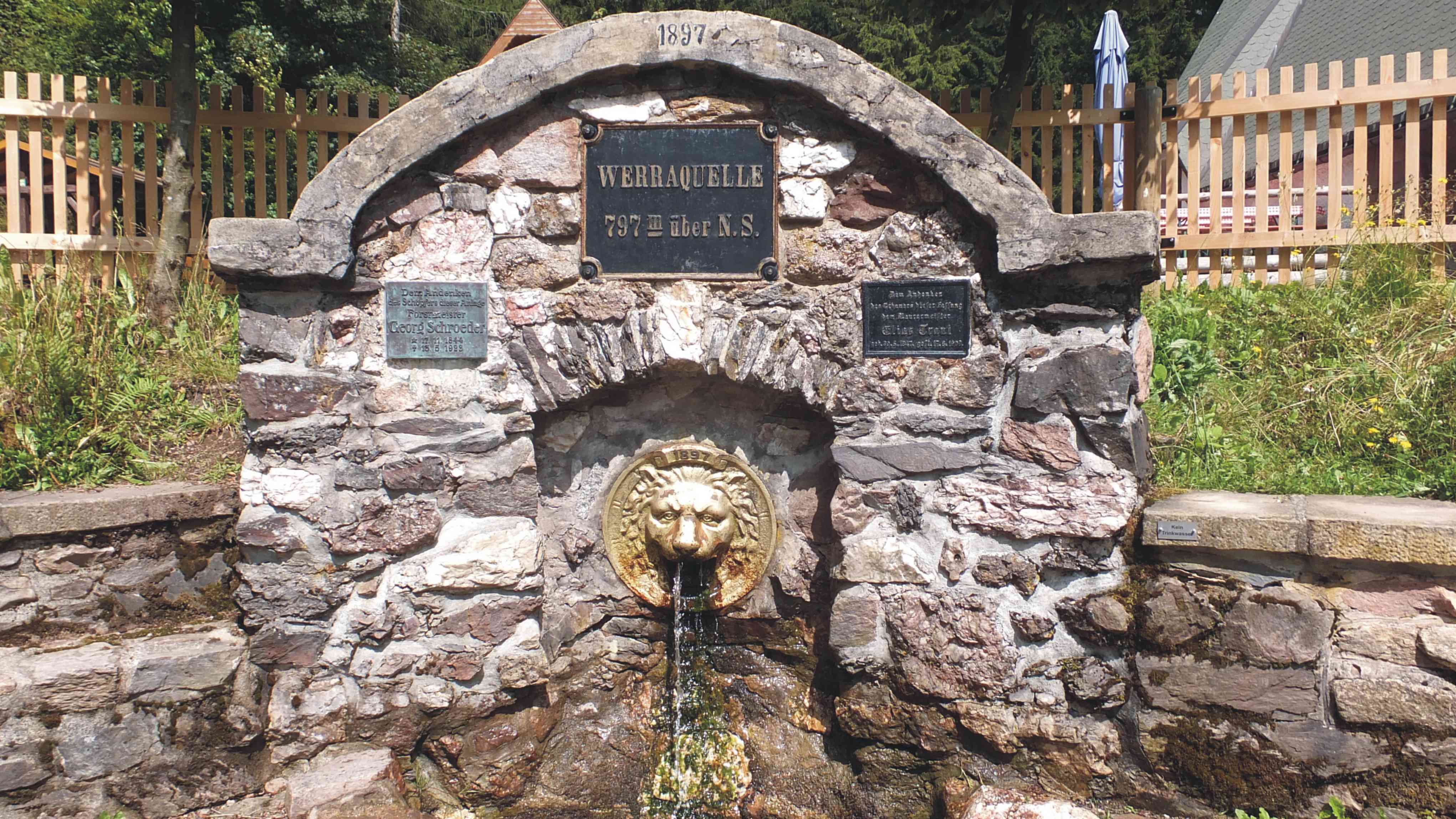 Nach 20 km Fahrstrecke waren wir am eigentlichen Ausgangspunkt unserer Radtour an einer der beiden Quellen, der Werraquelle Fehrenbach. Wir machten die obligatorischen Fotos und wären gerne kurz ins Gasthaus eingekehrt, das aber leider heute geschlossen war.