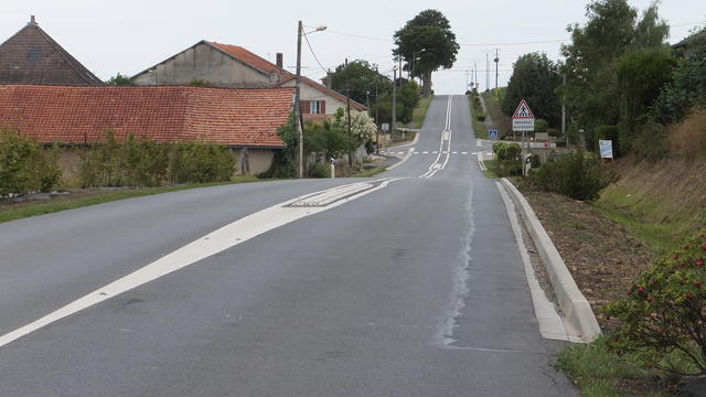 Zuerst fuhren wir zu einer Tankstelle zum Luftpumpen. Das ist einfacher, als per Hand nachzupumpen. Auf kleinen Landstraßen ging es bis Charny-sur-Meuse. wir überquerten die Meuse und einige Meter weiter den Canal de la Meuse. Von der Brücke aus sahen wir, daß ein asphaltierter Weg direkt daneben verlief. über diesen neu angelegten Weg fuhren wir bis Vacherauville. Leider hörte der Weg hier auf. Wir fragten verschiedene Dorfbewohner, ob es eine Möglichkeit gäbe über kleine Landstraßen oder Feldwege nach Champneuville oder Samogneux zu kommen. Wir sahen in der Ferne die D 964. Sie erschien uns sehr stark befahren und ging zudem mal wieder eine langezogene Steigung hinauf. Es gab aber leider keinen passenden Weg und so mußten wir doch über die große Straße, natürlich ohne Radweg, fahren.