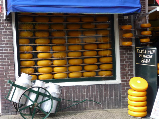 In Volendam war es uns in dieser Hinsicht aber zu viel. Wir waren froh, als wir schnell den Rummel hinter uns gelassen hatten. Die Strecke verlief nun bis Edam leicht landeinwärts. Hier gefiel es uns deutlich besser. Wir merkten, daß der berühmte Edamer Käse hier eine große Rolle spielt.