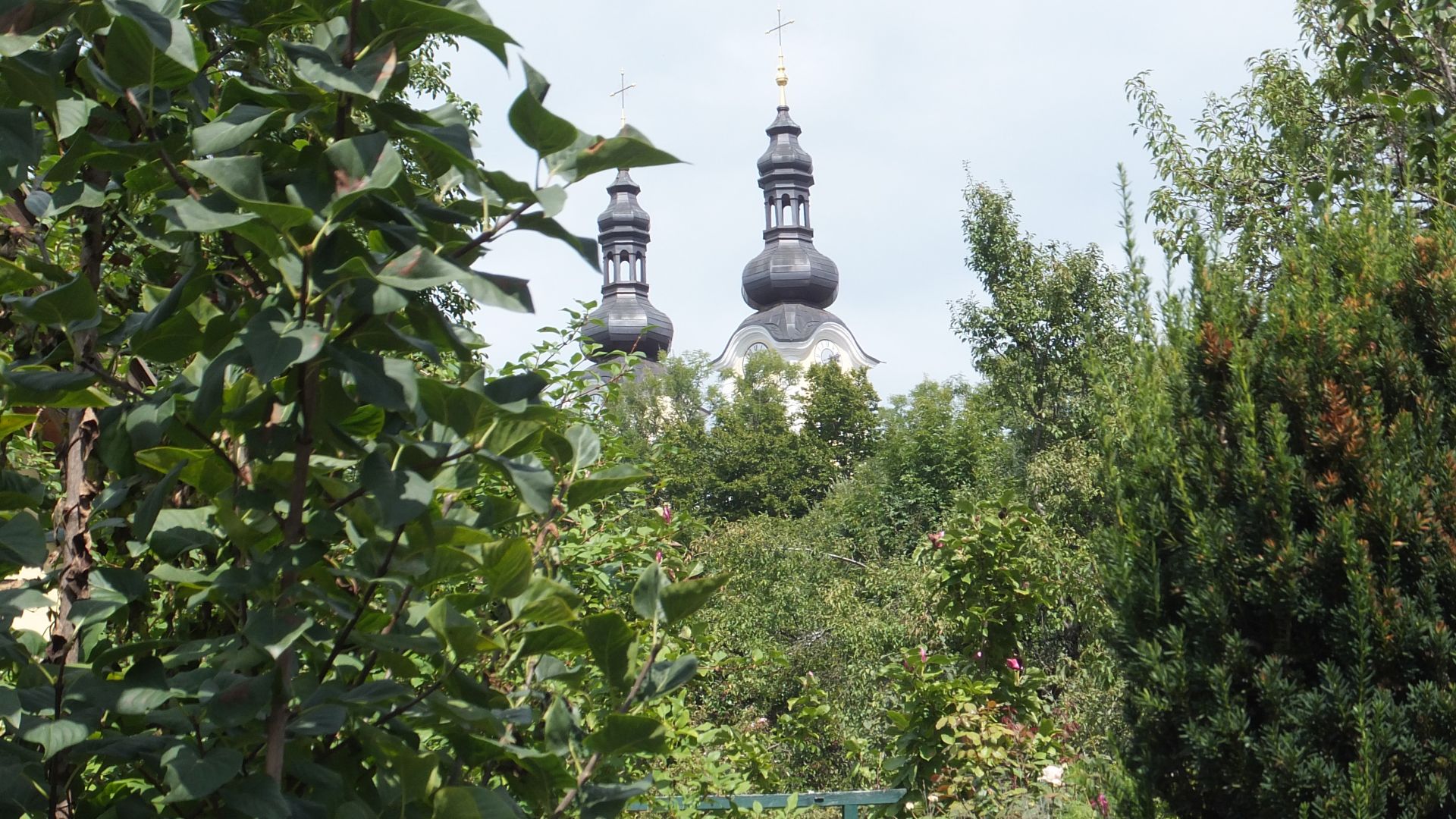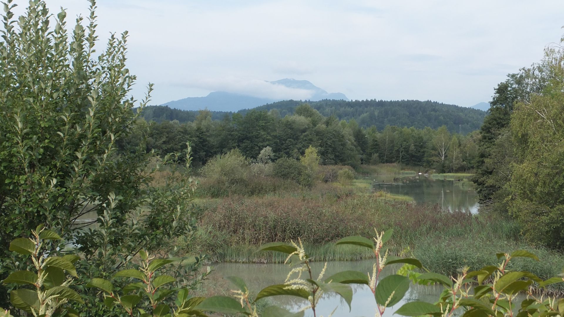 Dann fuhren wir längere Zeit an der aufgestauten Drau, dem Ferlacher Stausee entlang. Danach verließen wir den Drauradweg. An der Staumauer überquerten wir den See. Dann wurde es wirklich hart. Jetzt ging es in Serpentinen einen geschotterten Waldweg hinauf. Die wenigsten aus der Gruppe fuhren noch; nur die mit viel Kraft in Akkus und Beinen. Die meisten mußten den größten Teil des Weges schieben. In Maria Rain hatten wir es dann geschafft. Verschwitzt und manche mit letzter Kraft, erreichten wir den kleinen Wallfahrtsort auf gut 900 Meter Höhe.