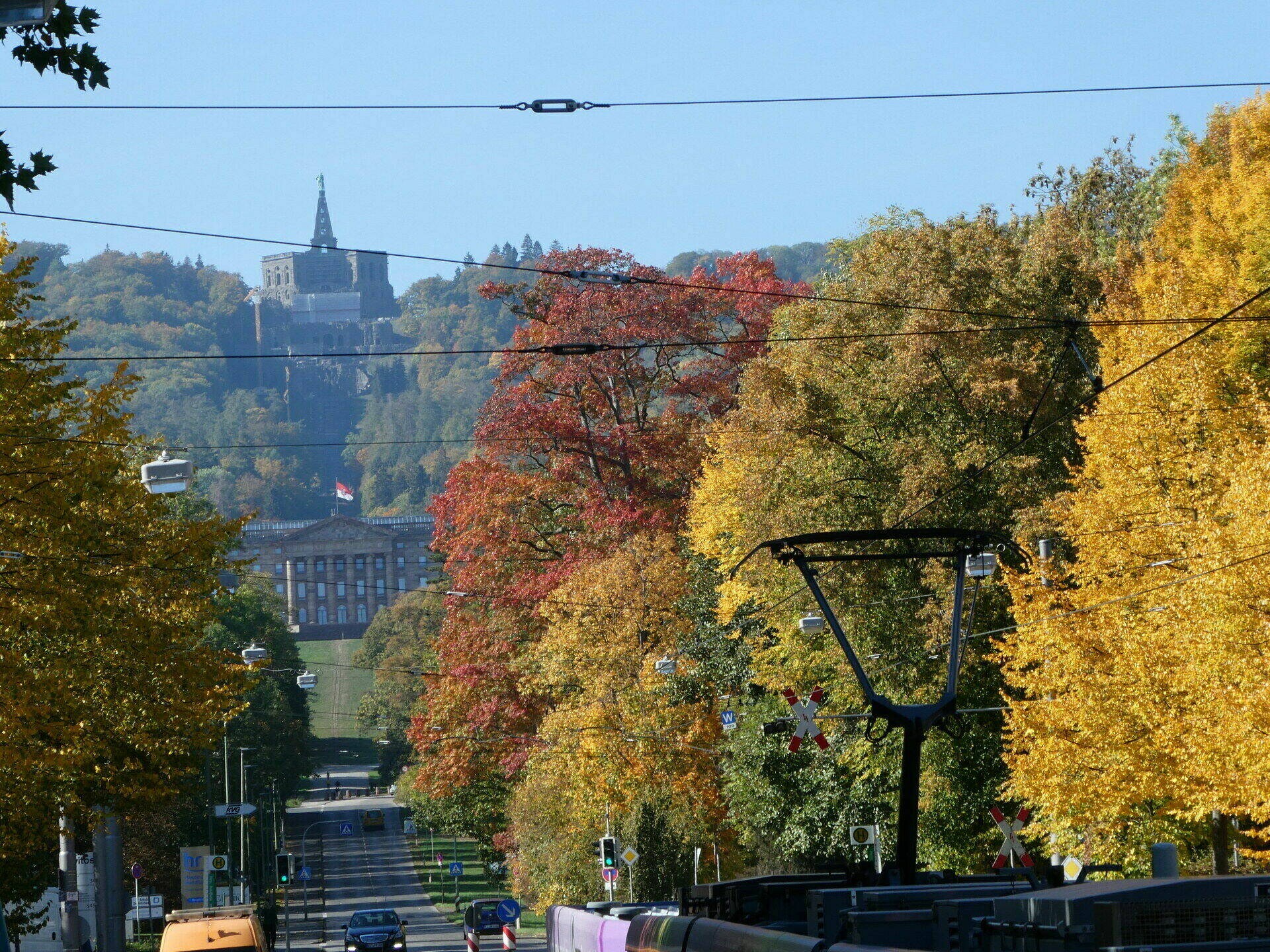 Für heute war Ruhetag angesagt. Wir sind zwar nicht radgefahren, aber auf der faulen Haut gelegen haben wir auch nicht. Der Wecker klingelte wie fast immer in dieser Woche um 8 Uhr. Zuerst zahlten wir unsere Rechnung und frühstückten dananch in Ruhe. Anschließend machten wir uns zu Fuß auf ins Stadtzentrum. Im Hellen sah die Welt schon wieder harmloser aus. Zuerst bummelten wir durch einige Geschäfte, schauten mal hier mal dort. In einer Bäckerei aßen wir eine Kleinigkeit und standen dann um 12.40 Uhr auf dem Parktplatz am Staatstheater. Pünktlich ging es von hier aus mit einem Doppeldeckerbus auf Stadtrundfahrt. Die Fahrt führte an der Orangerie und am Auebad vorbei hinauf zum Bahnhof Wilhelmshöhe. Danach gings weiter zum Schloß Wilhelmshöhe und dann hinaus aus der Stadt durch ein Waldgebiet zum Herkules. Hier hatten wir eine halbe Stunde Aufenthalt. Die Zeit nutzten wir für einen kurzen Aufstieg auf den Sockel des Herkules. Von hier oben hat man eine tolle Aussicht über ganz Kassel und auf den Bergpark Wilhelmshöhe, der seit 2013 als UNESCO Weltkulturerbe anerkannt ist. Leider fanden an diesem Tag keine Wasserspiele statt. Das Wasser fließt dann in Kaskaden vom Herkules 12km zum Schloß Wilhelmshöhe hinunter. Um die Wasserspiele zu sehen muß man an bestimmten Tagen kommen und viel Zeit mitbringen. Wir fuhren danach mit dem Bus zurück zum Staatstheater. Auf der Fahrt erhielten wir viele Informationen zur Stadtgeschichte und zu verschiedenen Sehenswürdigkeiten. Im Gegensatz zu den kleinen Städten, die wir auf unserer Tour kennengelernt hatten, gab es in Kassel nur sehr wenige historische Gebäude. Die Stadt wurde in der Nacht vom 22.-23.10.1943 zu 80% zerstört. Sie wurde später im Stil der 1950er Jahre wieder aufgebaut. Heute besitzt Kassel den Titel UNESCO Weltkulturerbe zum einen durch die Brüder Grimm, die lange Zeit hier lebten, Märchen "sammelten" und aufschrieben und zum anderen wegen des Wasserparks Wilhelmshöhe. In Kassel findet alle fünf Jahre die Documenta statt. Es ist eine der weltweit bedeutenden Ausstellungen für zeitgenössiche Kunst. Sie dauert jeweils 100 Tage. Nach der Stadtrundfahrt machten wir eine Pause in Deutschlands erster Einkaufsstraße / Fußgängerzone, der Treppenstraße. Wir genossen unseren Eiscafe in der ungewöhnlich warmen Oktobersonne und beobachteten das Treiben um uns herum. Danach machten wir noch einen kurzen Einkaufsbummel. Gegen 18.30 Uhr genossen wir bei einem guten Italiner unser letzte gemeinsames Abendessen auf dieser Tour. Um 20 Uhr gingen wir dann ins Kino. Dort lief der Film: Ballon. Obwohl wir das Ende kannten, fieberten wir mit und waren erleichtert, als die beiden Familien ihre Flucht über die innerdeutsche Grenze heil überstanden hatten. Danach fuhren wir mit der Straßenbahn zurück in unser Hotel. Die letzten Meter gingen wir mit einem mulmigem Gefühl, zumal wir noch durch eine Unterführung gehen mußten und die Gegend nicht sehr "fein" war.