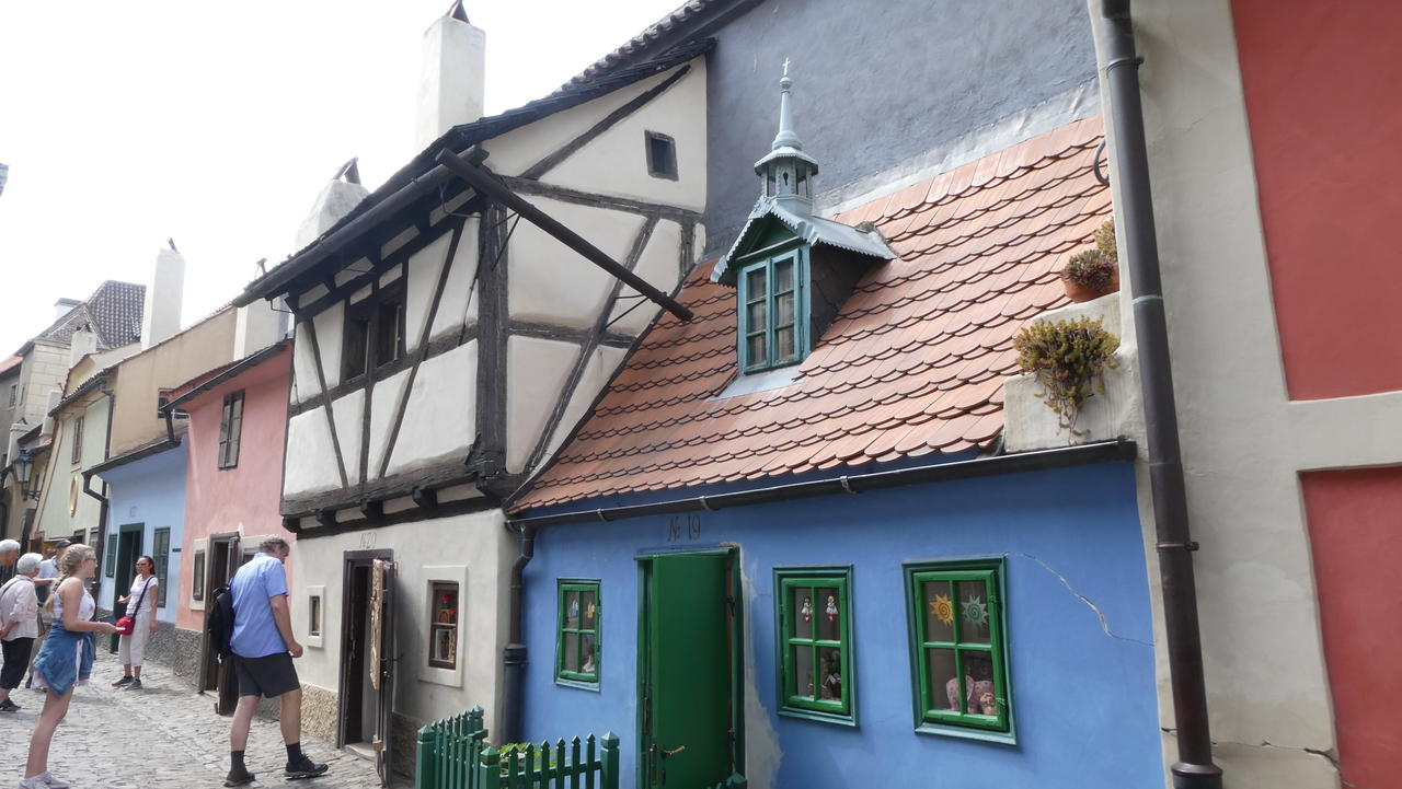 Anschließend gingen wir zur „Goldenen Gasse“. Direkt an der Burgmauer sind kleine Häuschen angebaut. Sie dienten als Unterkunft der Burgwachen. Bevor es hineinging, mußten wir natürlich erst wieder anstehen. Einige Häuschen waren dem früheren Zweck entsprechend eingerichtet. Natürlich gab es jetzt dort auch Souvenierläden. Etwas gruselig war die Folterkammer. Gut, daß heute solche Methoden nicht mehr angewendet werden.
