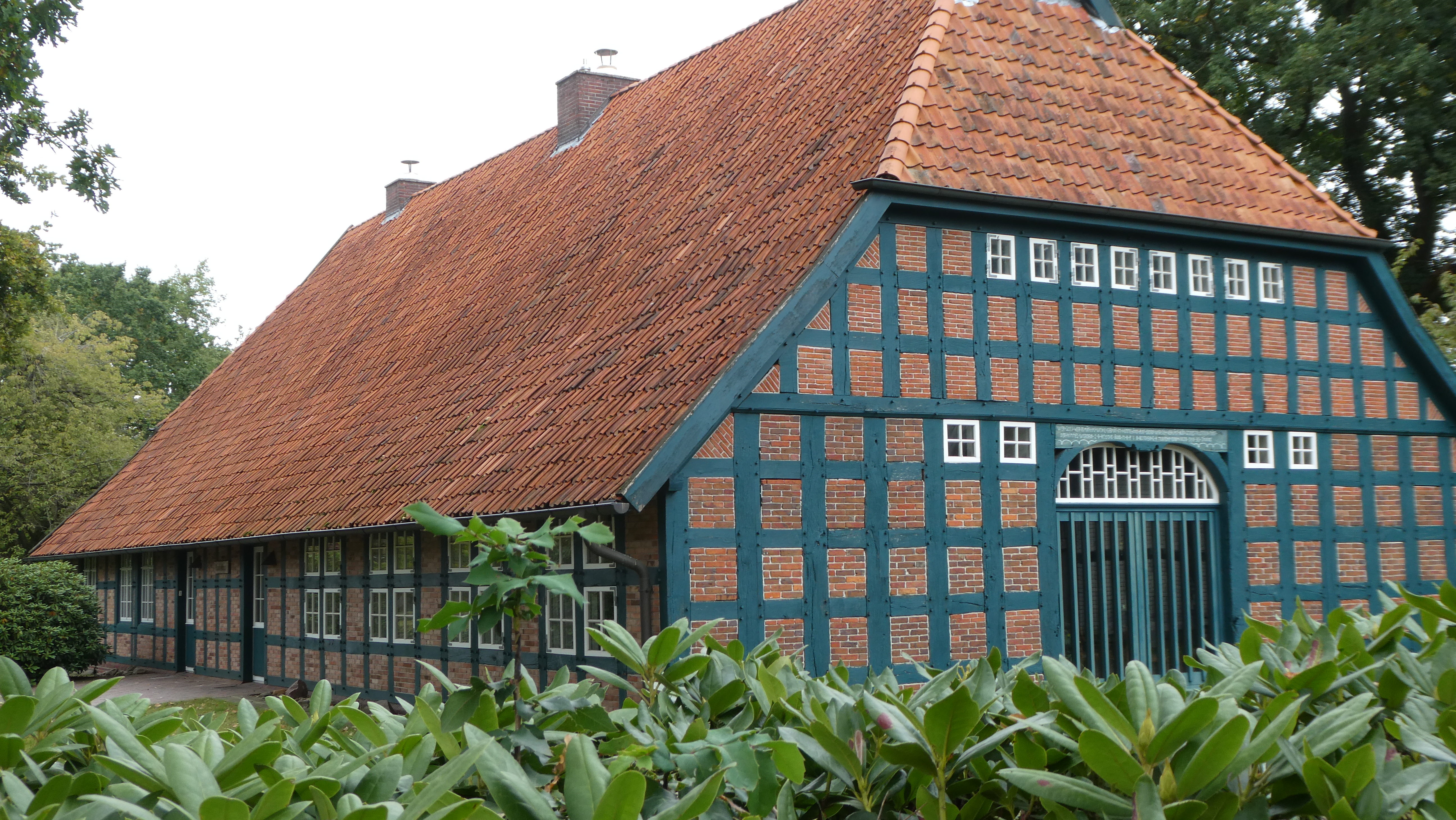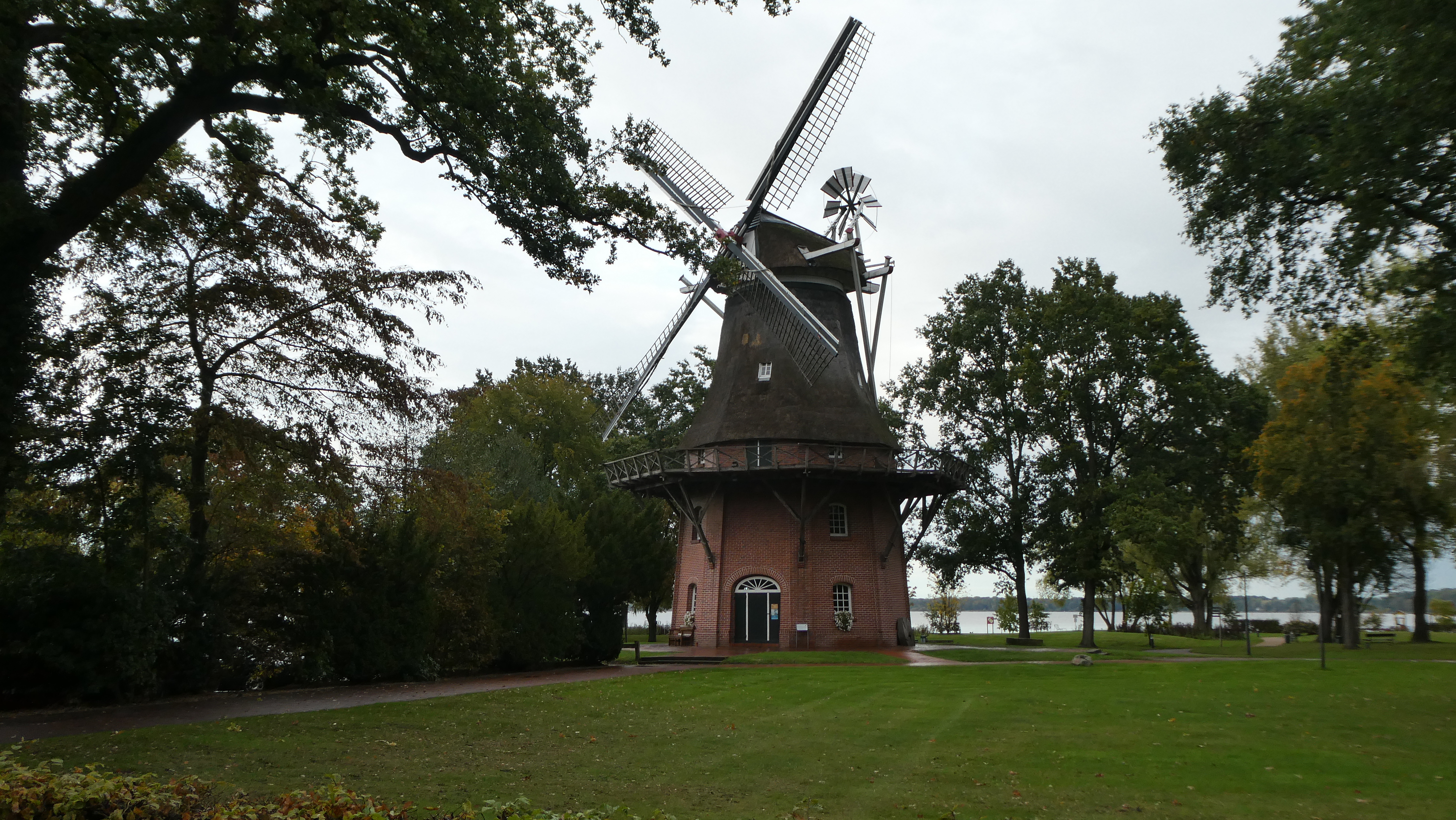 Heute frühstückten wir in einer Bäckerei in der Nähe unseres Hotels. Danach packten wir die Räder und fuhren zunächst über die Oythener Straße aus dem Stadtzentrum hinaus, bis wir auf unseren eigentlichen Radweg trafen. In dieser Moorgegend wachsen viele Rhododendronbüsche. Im Frühjahr zur Blüte, ist es hier sicher besonders schön.