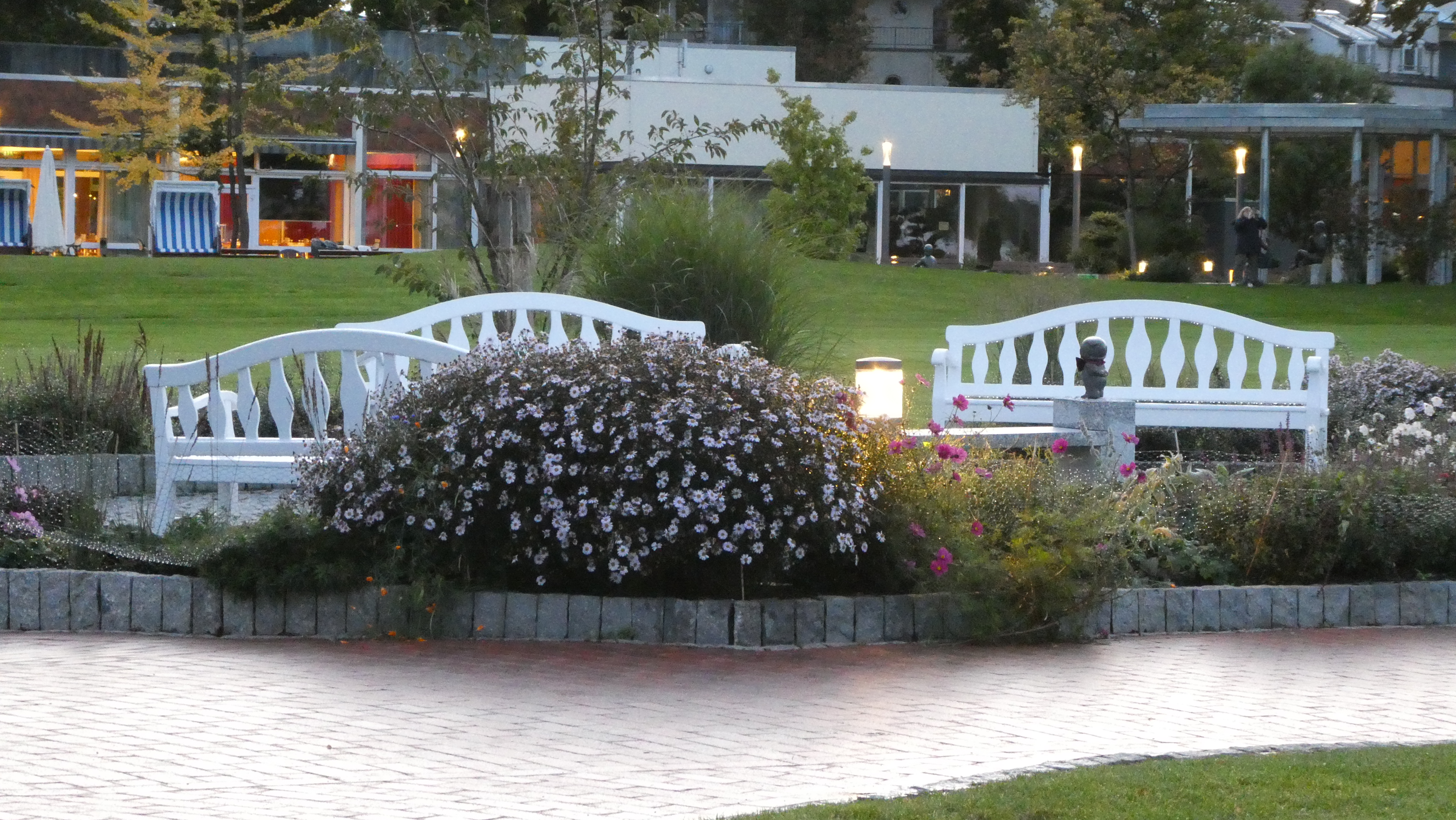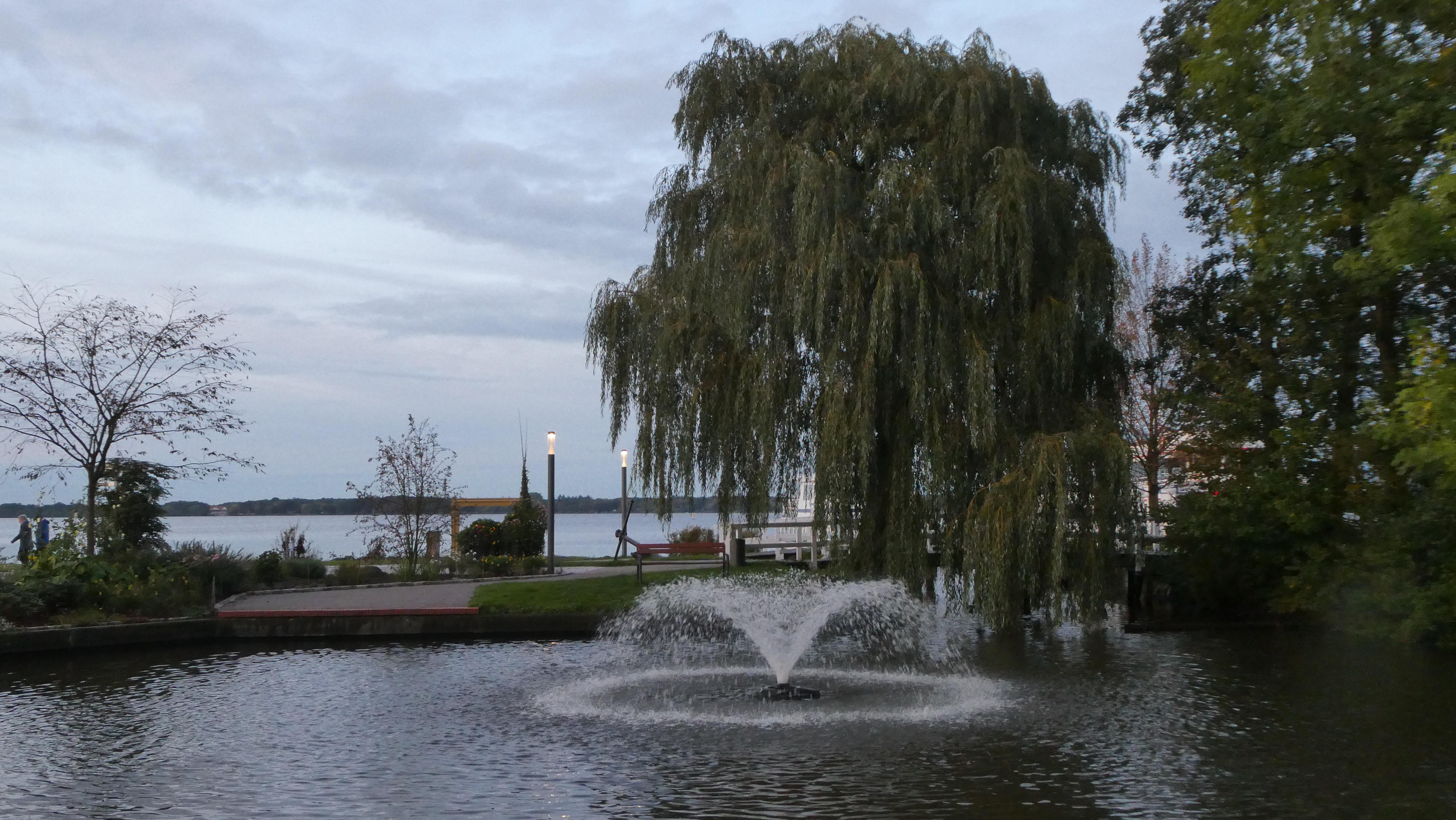 Gegen 17 Uhr erreichten wir unser Hotel direkt am See. Nun hörte auch der Regen wieder auf. Wir brachten nur kurz das Gepäck aufs Zimmer und gingen zum schönen Strandpark. Hier hatten wir einen herrlichen Blick auf den See und die beiden Ausflugsschiffe, die am Ufer lagen. Wir machten noch einen Schlenker am kleinen Freilichtmuseum vorbei, bevor wir zurück zum Hotel gingen. So hatten wir vor Einbruch der Dunkelheit noch einen kleinen Eindruck vom Kurgebiet der Stadt bekommen.