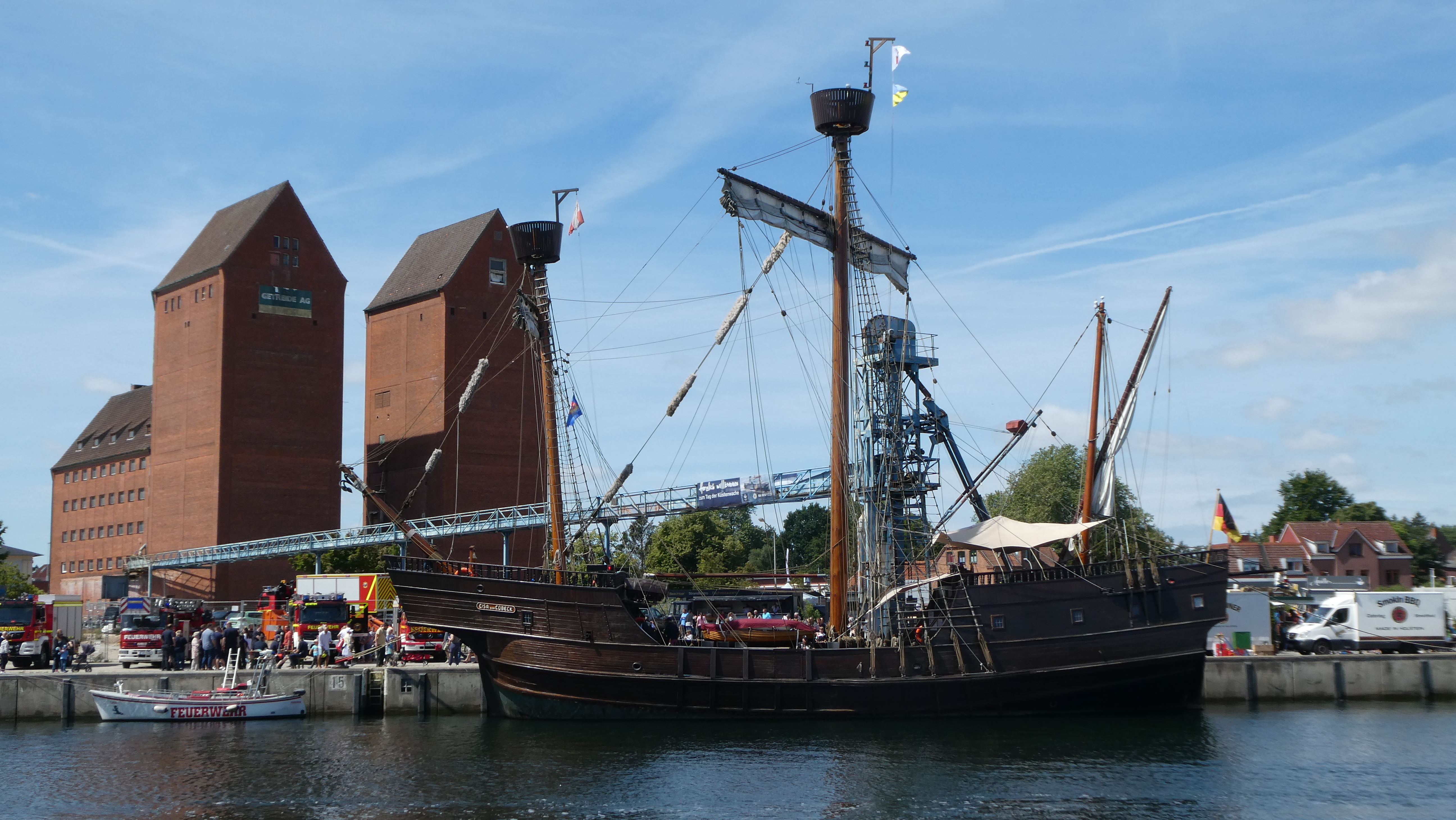 In Neustadt fand ein Hafenfest statt. Neben vielen anderen lagen zwei alte, große Segelschiffe mit Ausguck am Masttop, im Wasser. Verschiedene größere und kleinere Boote gab es zu bestaunen. Es herrschte Volksfeststimmung. Uns war der Rummel aber zu viel, deshalb setzten wir die Tour fort. In Redder machten wir eine kurze Kaffeepause. Kuchen gab es später in Haffkrug. Wir saßen im Schatten vor einer Bäckerei und beobachteten das Treiben auf der Strandallee. Hier waren mehr Autos und Fahrräder als in Kevelaer an hohen Feiertagen.