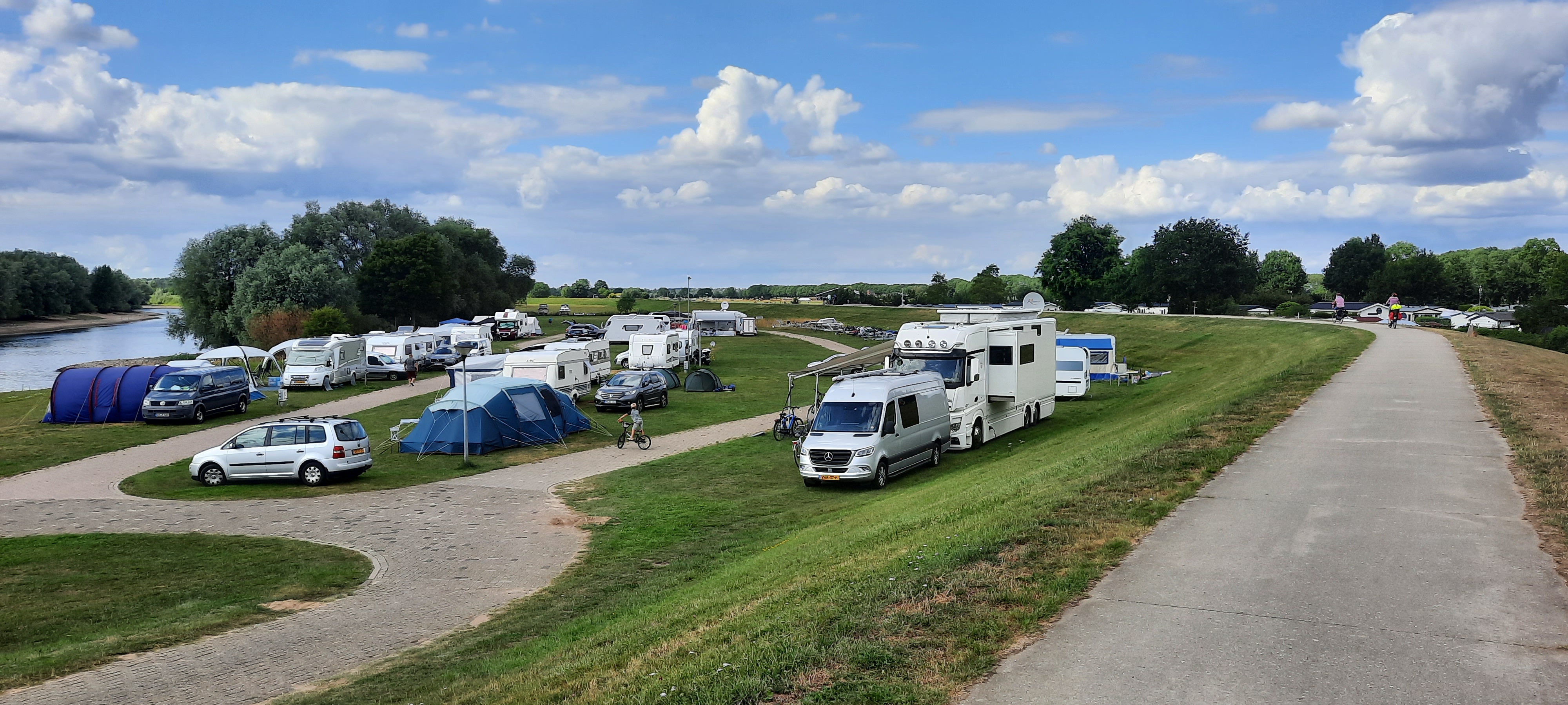 Unterwegs kamen wir an mehreren Campingplätzen, einige mit Blockhütten und Mobilheimen und zum Teil mit sehr großen Spielplätzen vorbei. Wir sahen sogar einen Campingplatz mit Hallenbad und Wasserrutschen. Für Familien mit Kindern ist es vielleicht schön, aber mir wäre das zu eng beieinander und zu voll. Auch ganze Ferienhaussiedlungen lagen in der Nähe der Ijssel.