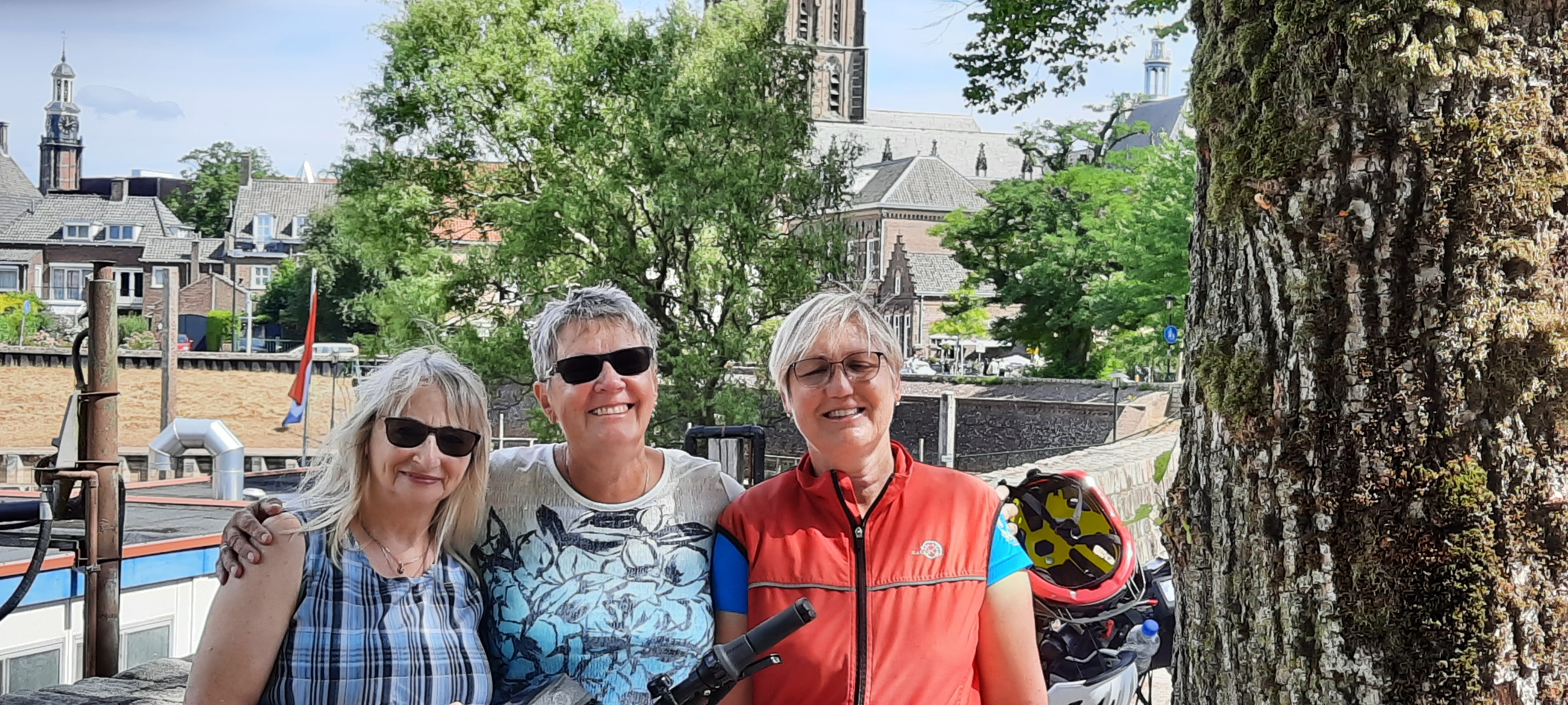 Da sahen wir sie, Geri, unsere neue Bekannte. Sie fuhr auf dem Radweg vor uns her. An der nächsten Kreuzung sprachen wir sie an und stellten mit Erstaunen fest, daß sie, genau wie wir, in Olst übernachten würde. Sie reiste auch mit Vrienden op de Fiets. Sie hatte nirgends vorgebucht, sondern versucht immer spontan eine Übernachtung zu finden. Wie der Zufall es wollte, übernachteten wir sogar im gleichen Haus. Nun fuhren wir wieder gemeinsam weiter.
