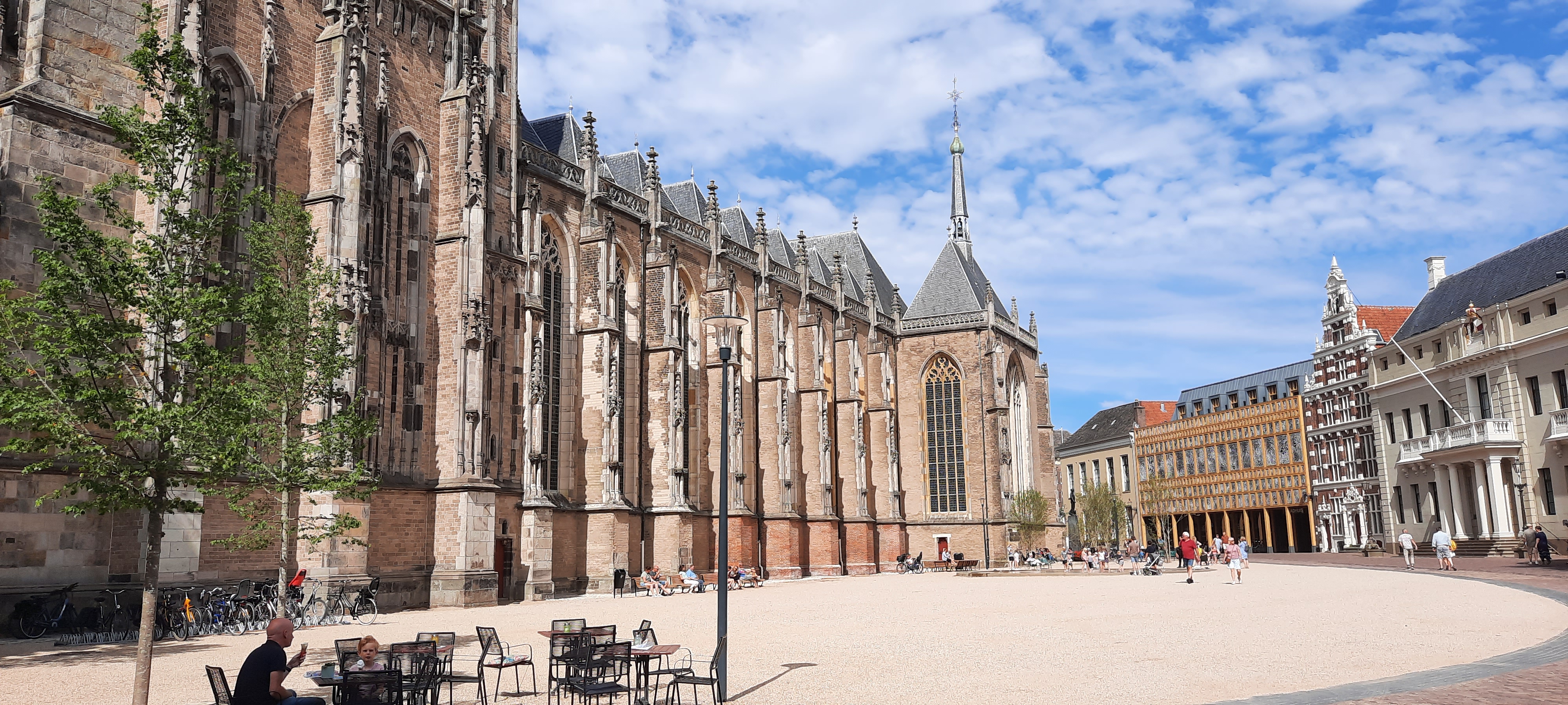 Diesmal überquerten wir den Fluß mit Hilfe einer kleinen Personen- und Radfähre. Gegen 16 Uhr waren wir in Deventer. Diese Stadt war ein weiteres Highlight unserer Radtour. Zuerst gelangten wir zur Grote St. Lebuinuskerk, deren ungewöhnliche Turmkuppel schon weit vor der Stadt zu sehen ist. Wir folgten den Radwegschildern um die Kirche herum. Dort, am grote Kerkhof standen neben dem Rathaus, mehrere sehenswerte, alte Stadthäuser.