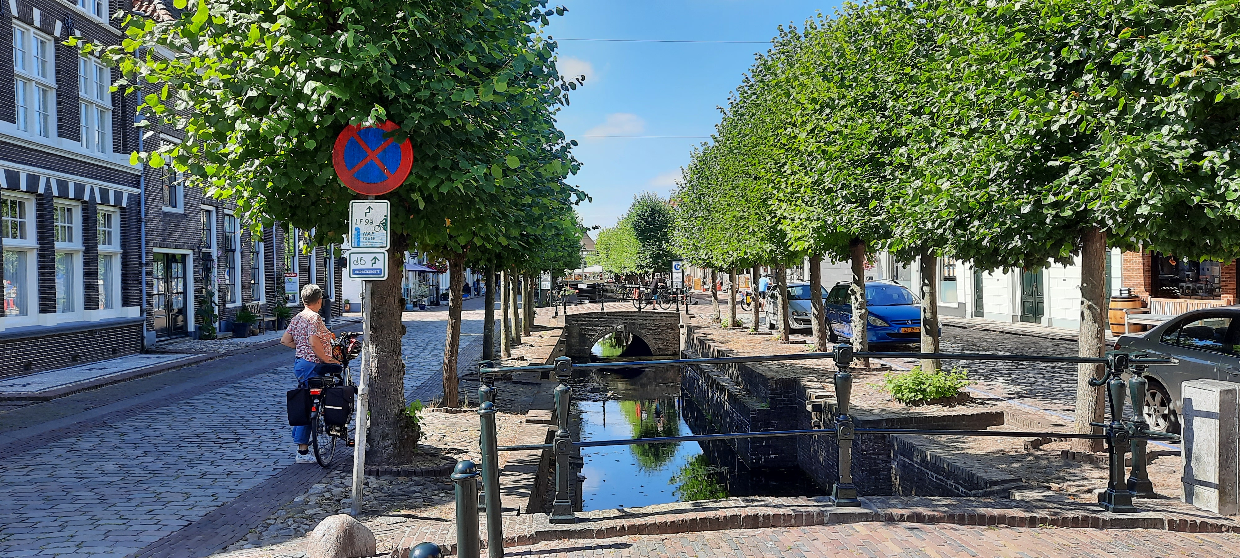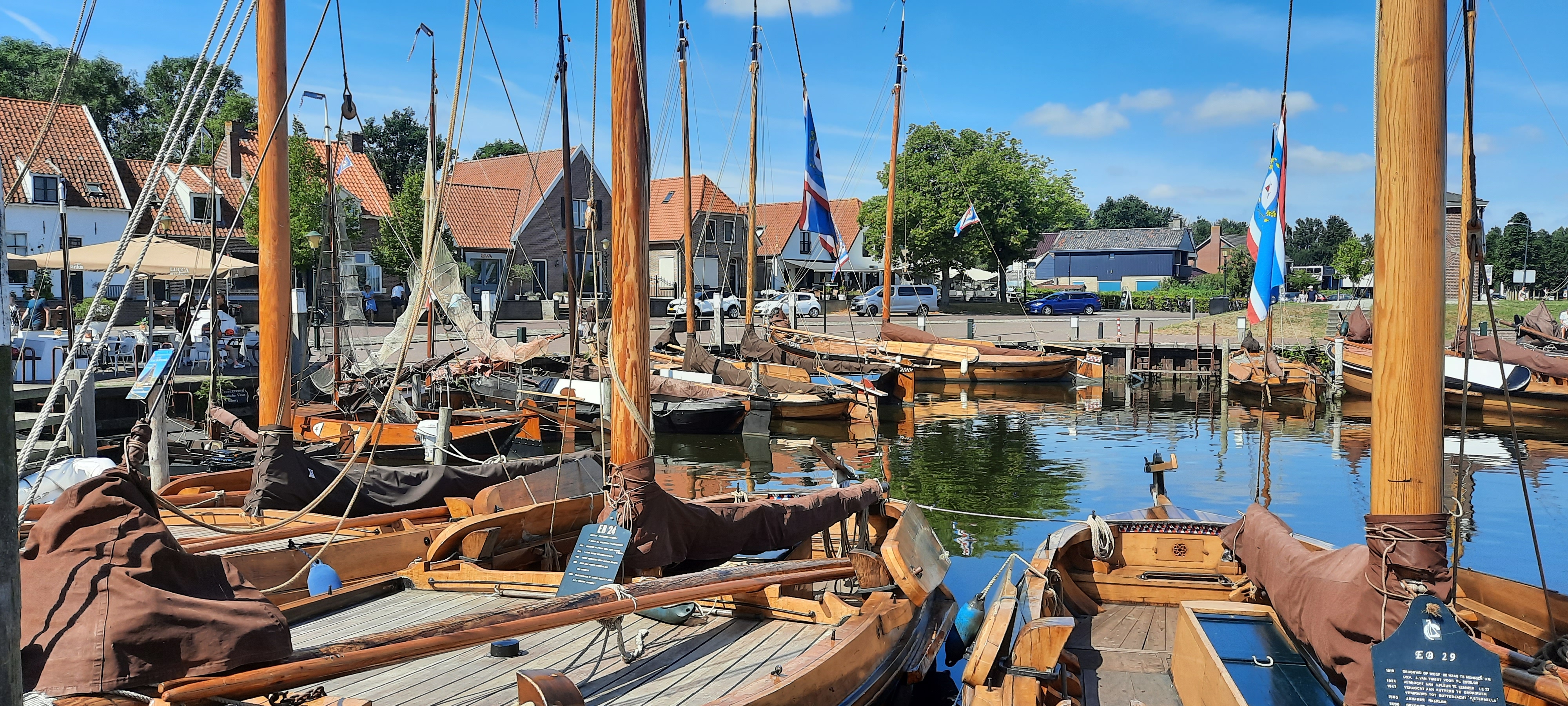Nach einer Stunde erreichten wir Elburg. Hier herrschte richtig Hochbetrieb, es war Samstag, Ferienzeit und gutes Wetter. Die Menschen schoben sich durch die Gassen des hübschen Städtchens. Als ich vor fünf Jahren mit Hildegard hier war, war es nicht ganz so überlaufen. Wir machten eine Kaffeepause und besuchten danach den kleinen Hafen. Hier lagen viele alte Plattbodenschiffe vor Anker. Schilder wiesen darauf hin, daß man sogar mitfahren könne.