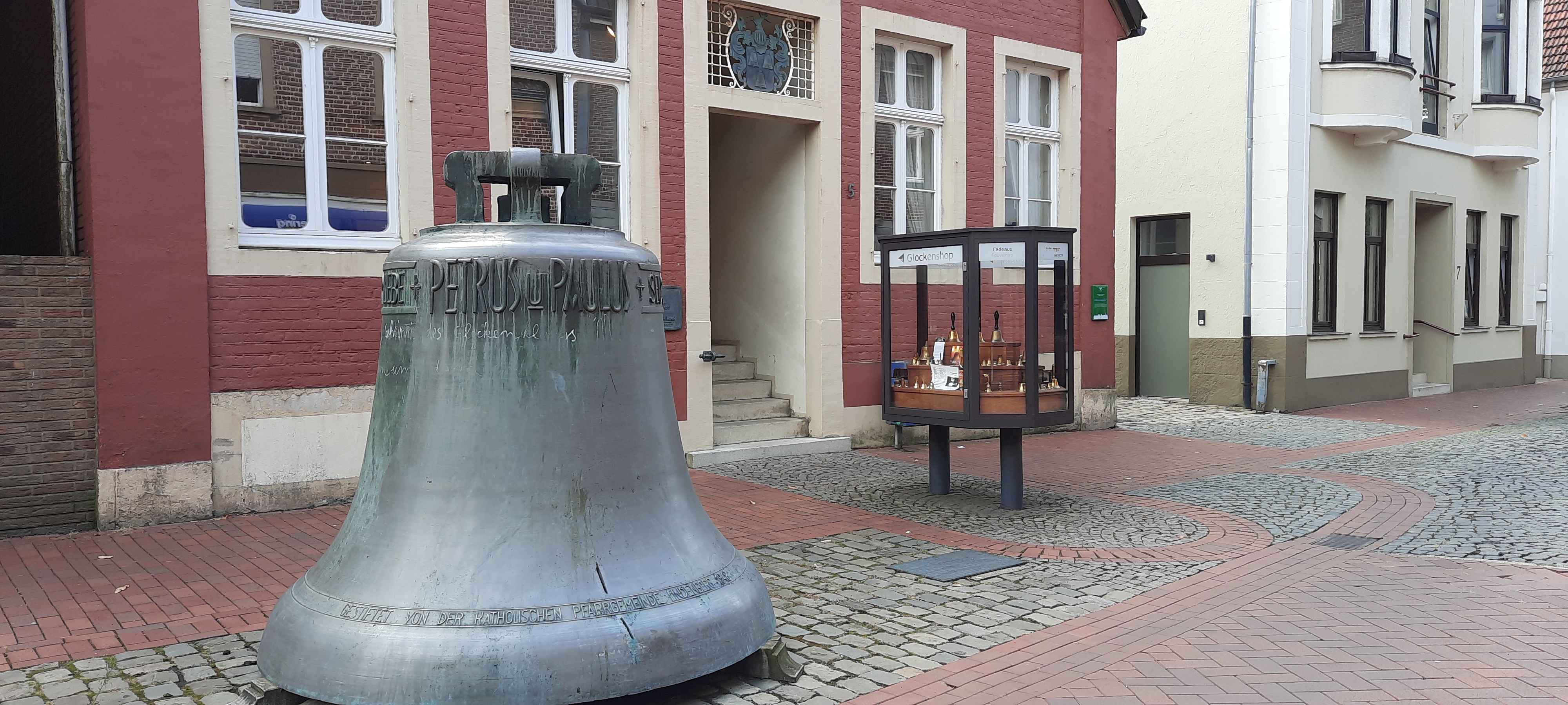 Dann fuhren wir weiter nach Gescher. Vor dem Glockenmuseum stand eine große, alte Kirchenglocke und in einem Schaukasten daneben standen diverse kleine Glocken. Wenn wir mehr Zeit gehabt hätten, hätten wir uns das Museum angesehen.