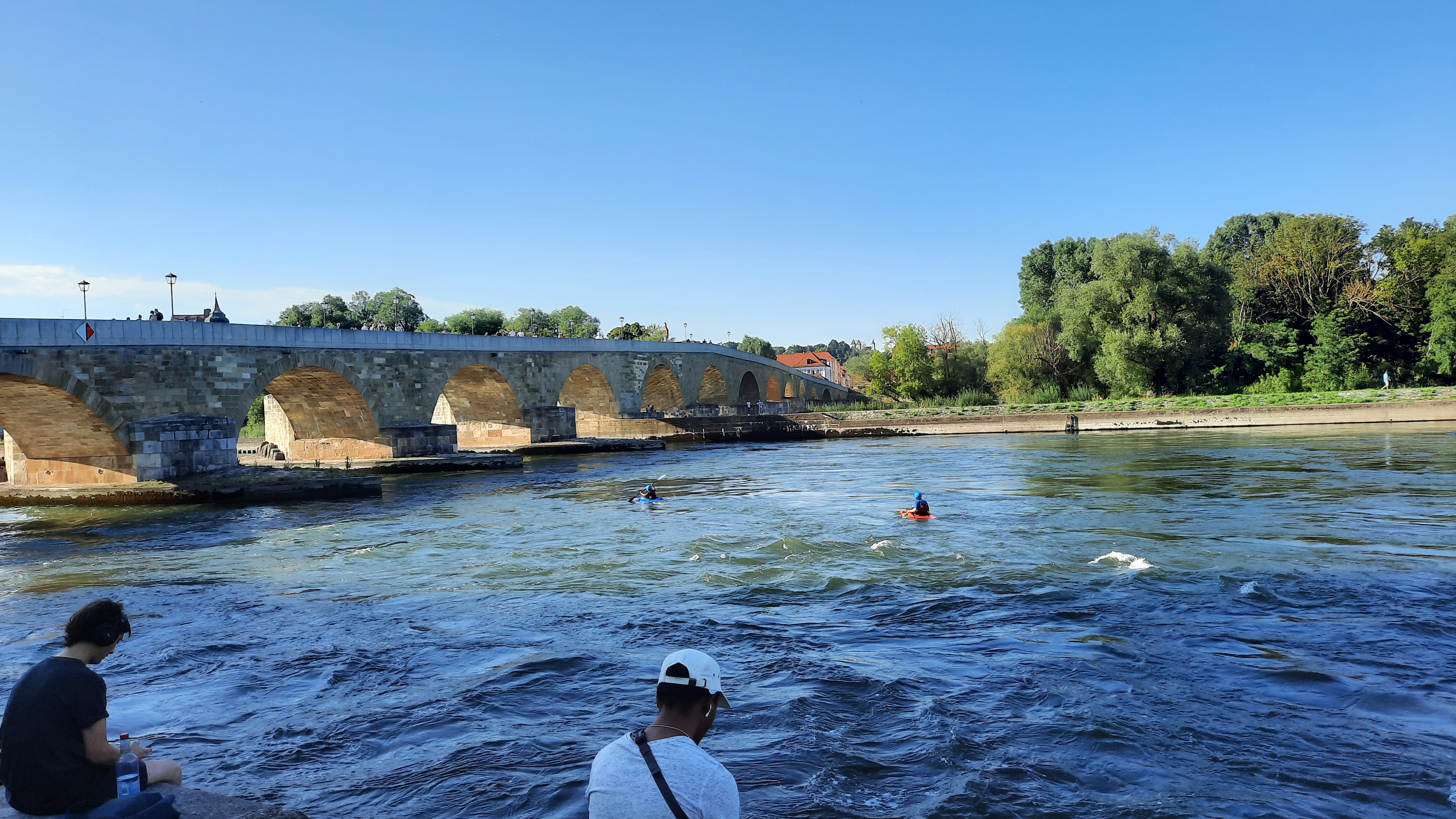 Nachdem wir geduscht hatten, ruhten wir uns eine Weile aus. Danach gingen wir in die Innenstadt. Wir besichtigten den Dom, schlenderten zur alten Donaubrücke und gönnten uns ein Eis auf der Hand. Auf der Donau konnten wir einige Kanufahrer beobachten, die mit ihren kleinen Booten regelrechte Kunststücke machten. Es waren viel Touristen unterwegs. Am frühen Abend aßen wir in einer schmalen Gasse in einer Pizzeria lecker und gemütlich zu Abend. Danach begleiteten wir Elvira zurück zum Hotel. Sie hatte in der Nacht zuvor schlecht geschlafen und fühlte sich nicht ganz wohl.