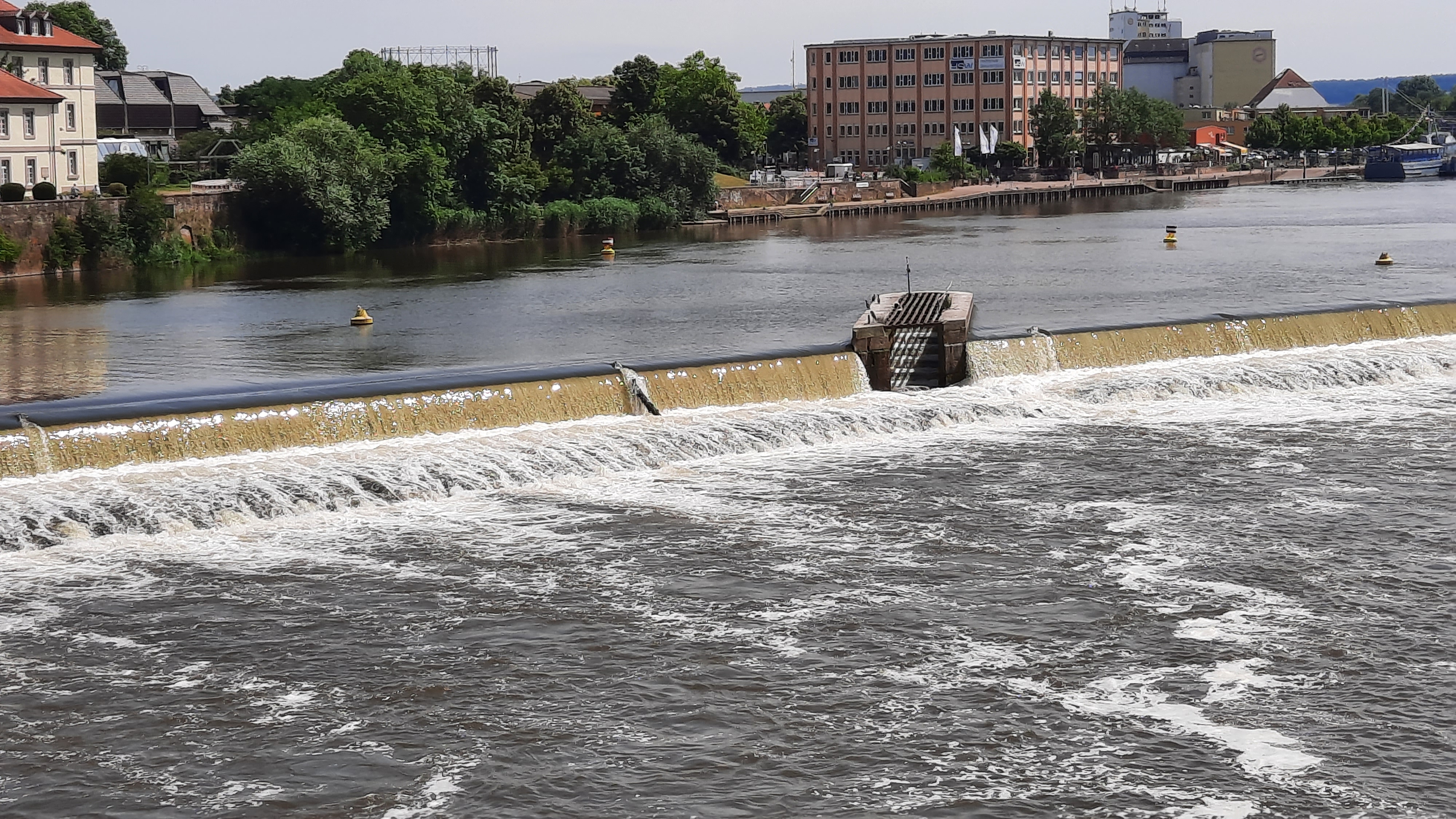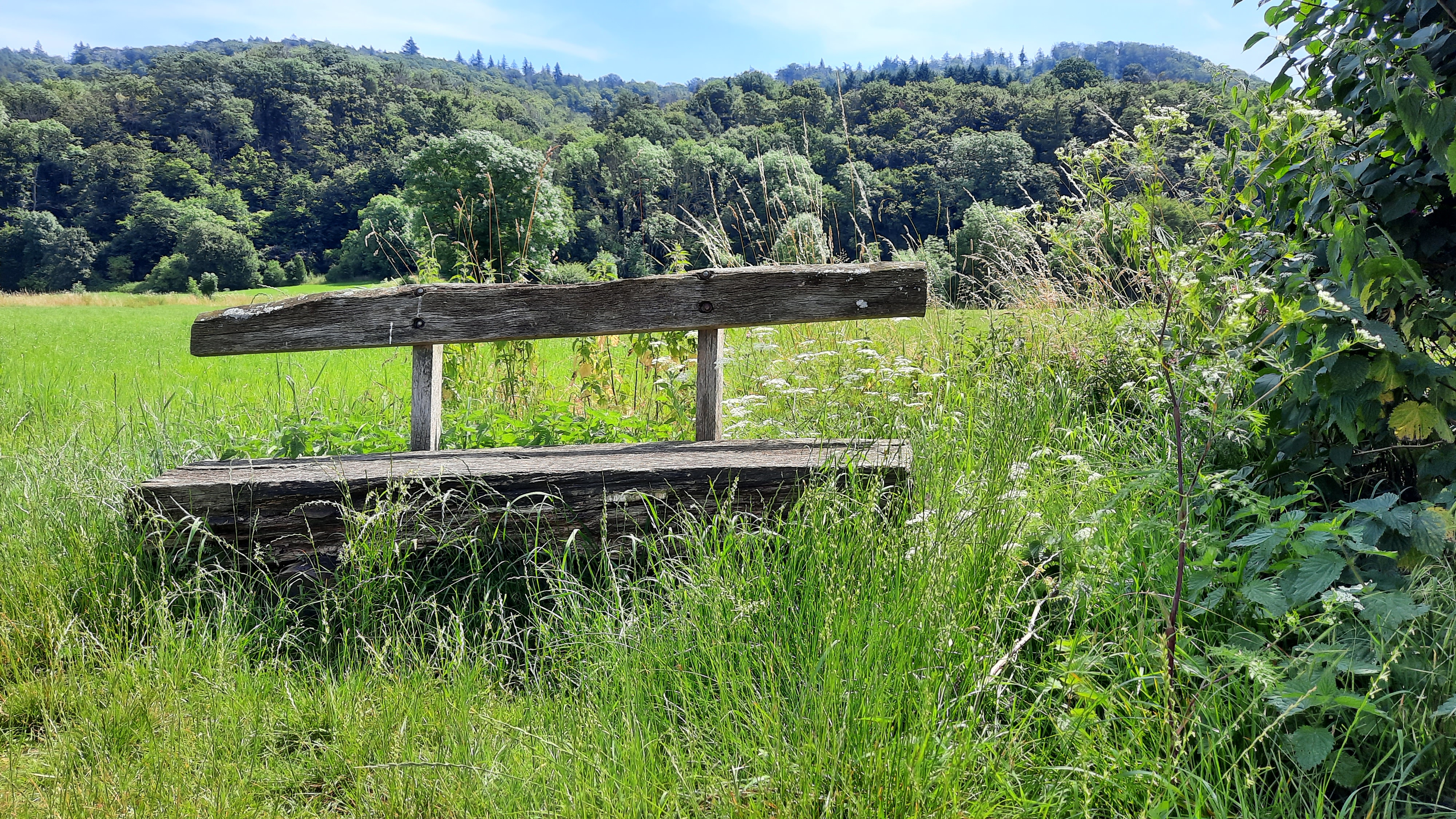 Einige Kilometer weiter erreichten wir Emmerthal. Dort füllten wir in einem Supermarkt unsere Wasservorräte auf. Unter einem Sonnenschirm vor dem Markt tranken wir Kaffee und aßen unsere Brötchen, die wir am Morgen nicht geschafft hatten. Es war jetzt wieder sehr warm geworden.